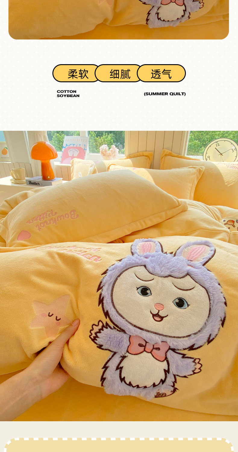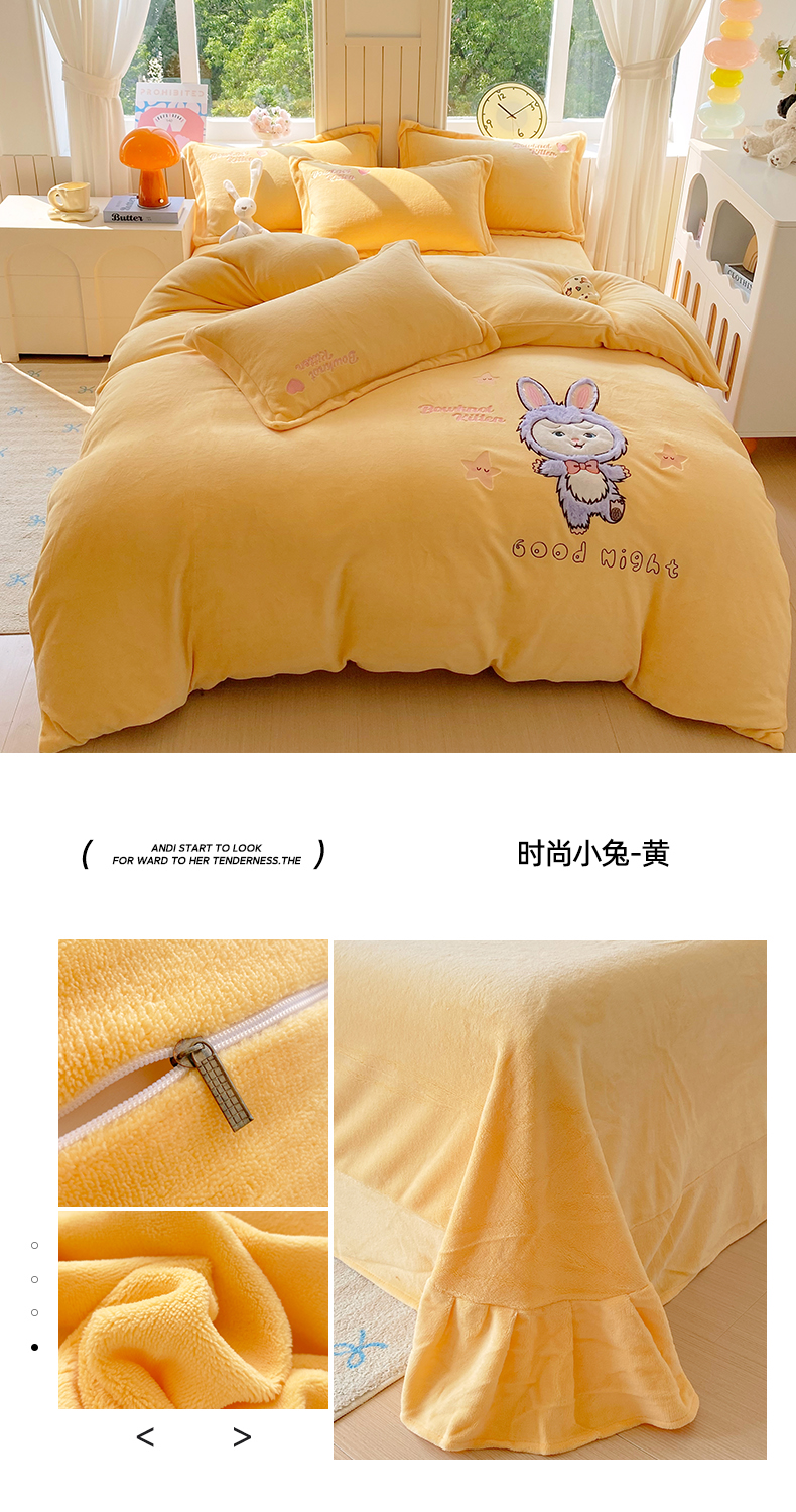 当前位置: 91家纺网 > 商品网购 > 床品套件 > 四件套 > 牛奶绒四件套 > 悦织湾家纺 牛奶绒四件套纯色贴布绣床单款床盖款床上用品四件套时尚小兔2025新款加厚 床单款时尚小兔-黄