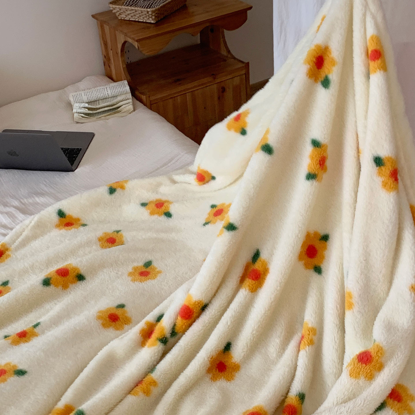 商品名称:桃喜 2025新款亲肤舒适摇粒绒毛毯 香草波点