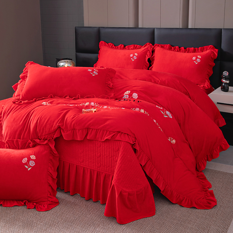 (总)畅畅家纺 2024新款高克重加厚保暖冬季牛奶绒纯色床盖款四件套,豆沙,灰色,天蓝,玉色,中国红