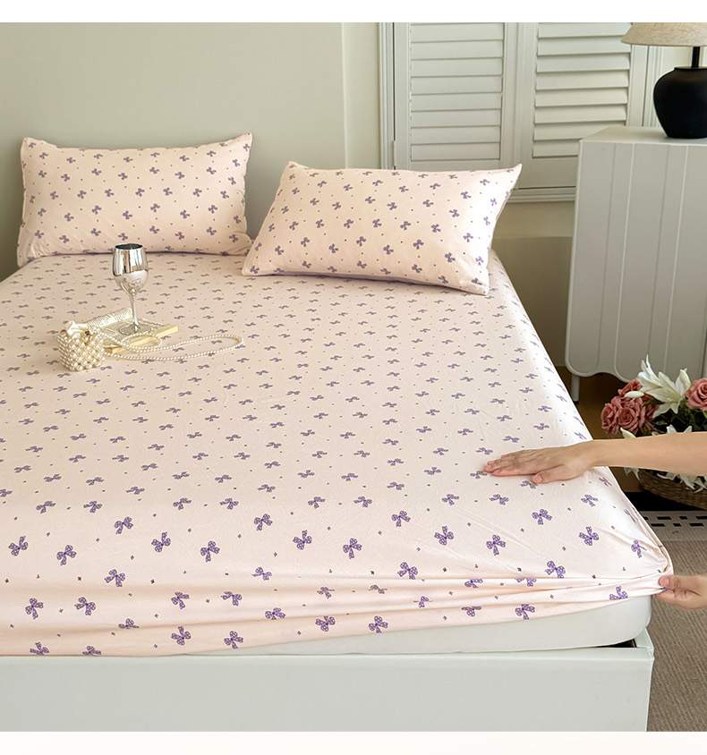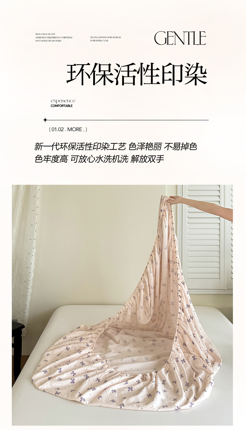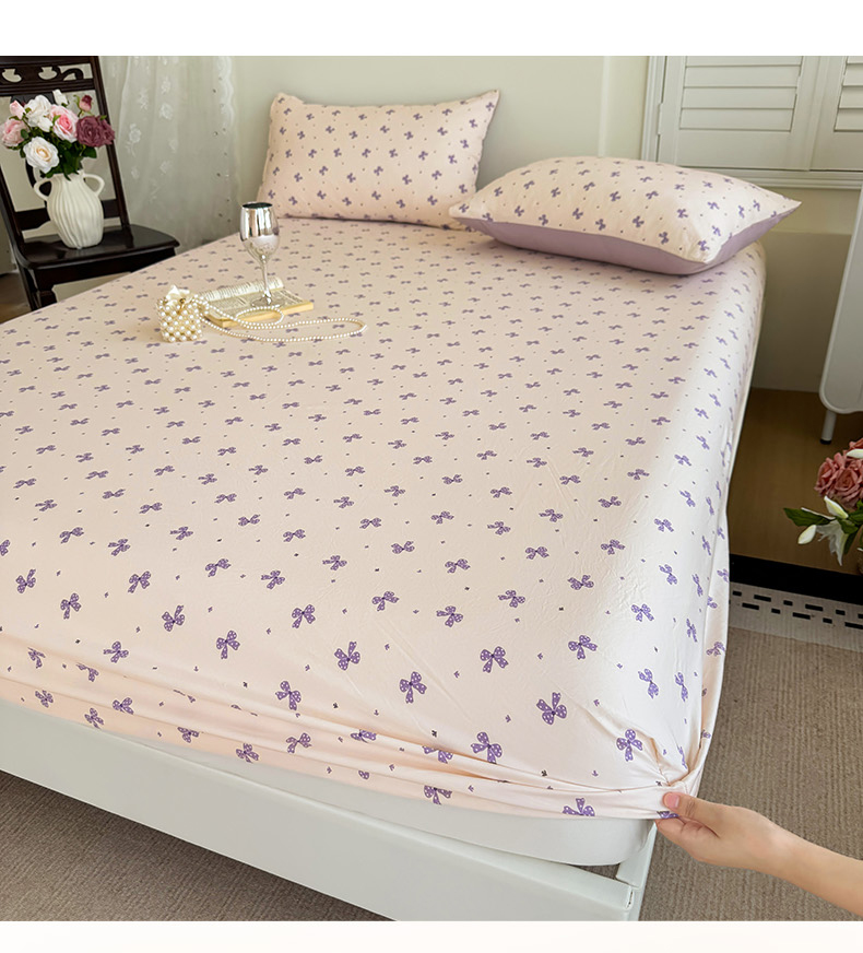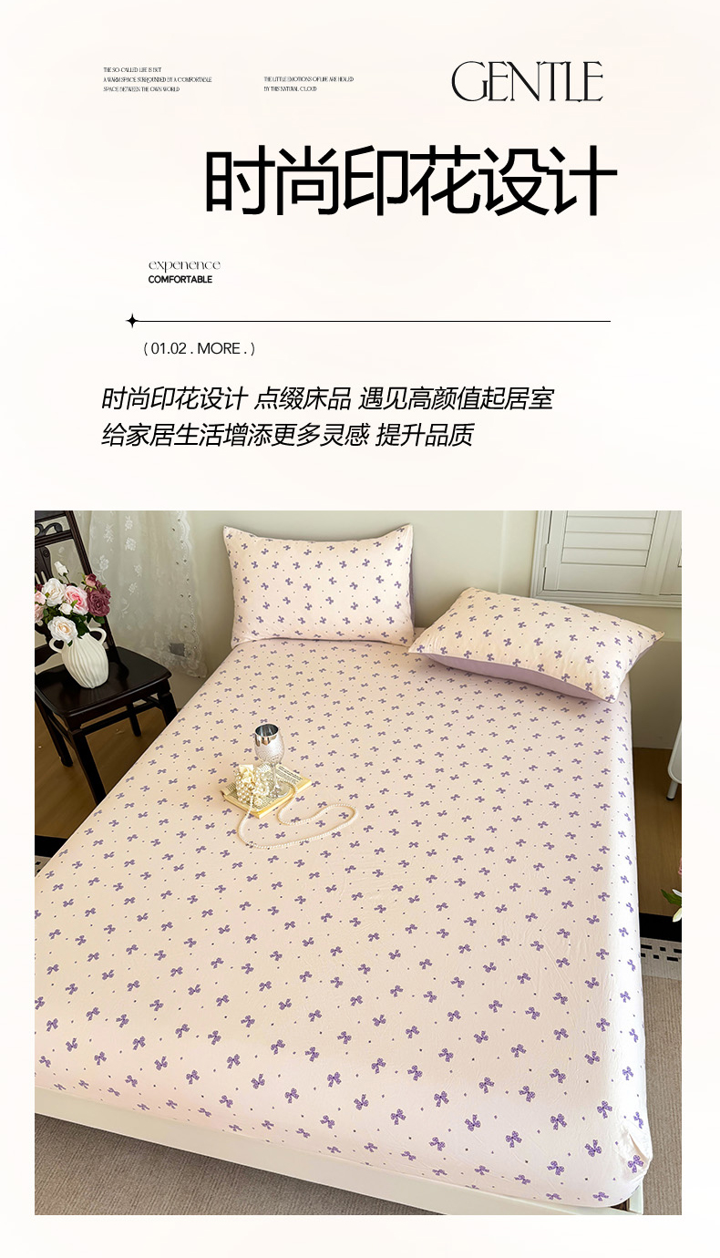 卢赛尔 2025新款水洗珍珠棉皱皱纱印花床笠 蝴蝶结紫