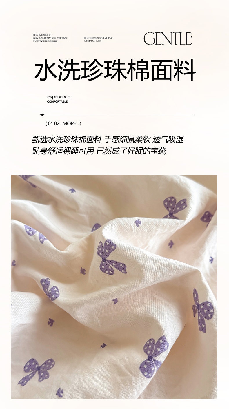 (总)卢赛尔 2025新款水洗珍珠印花四件套,暗香,蝴蝶结紫,南粉-灰,千姿,蔷薇-粉,秋草-灰,山茶-绿,格子-绿,甜心草莓,相思粉,小棕熊