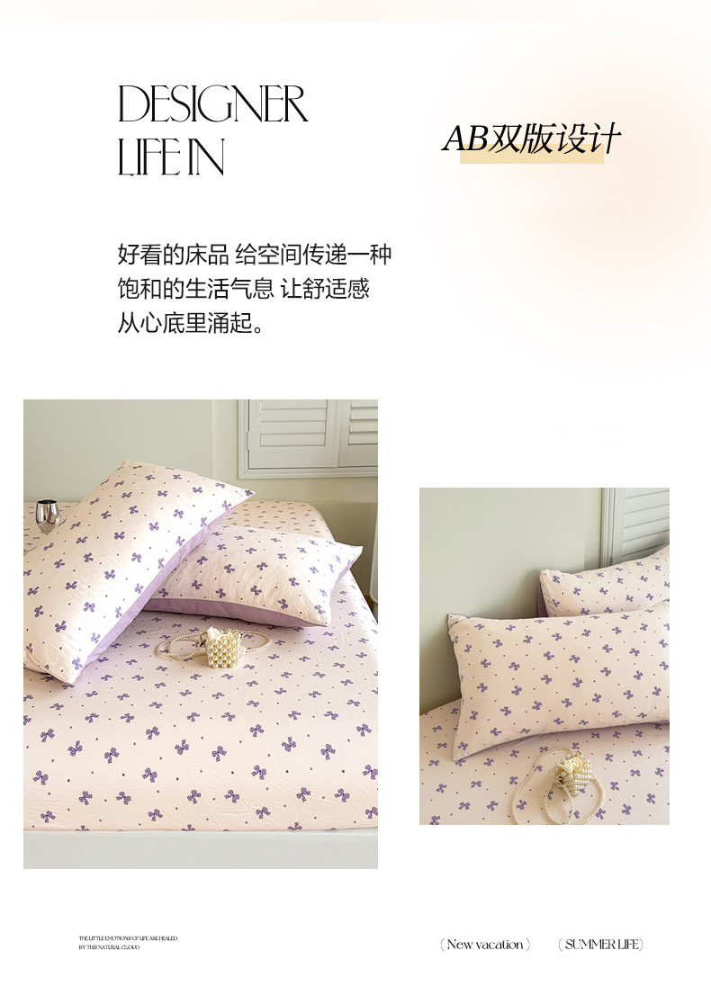当前位置: 91家纺网 > 商品网购 > 床上用品 > 床笠 > 卢赛尔 2025新款水洗珍珠棉皱皱纱印花床笠 蝴蝶结紫