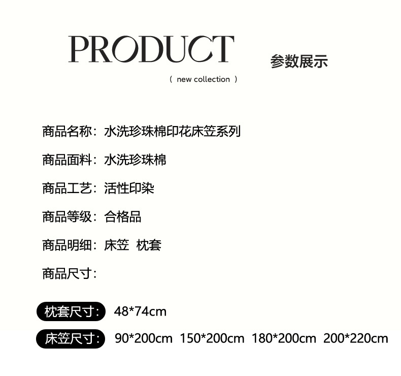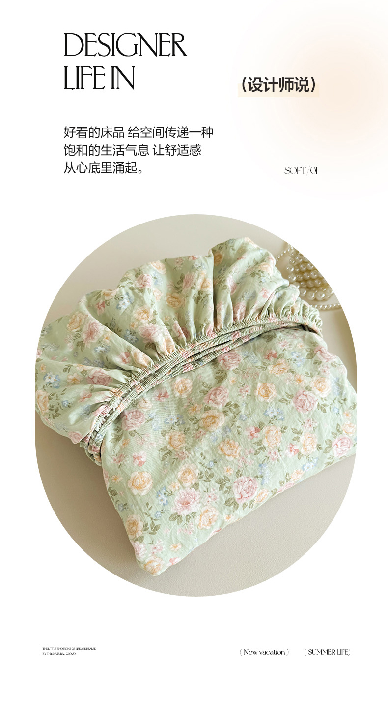 • 91家纺网 家纺一手货源 找家纺 卢赛尔 2025新款水洗珍珠棉皱皱纱印花床笠 组合图