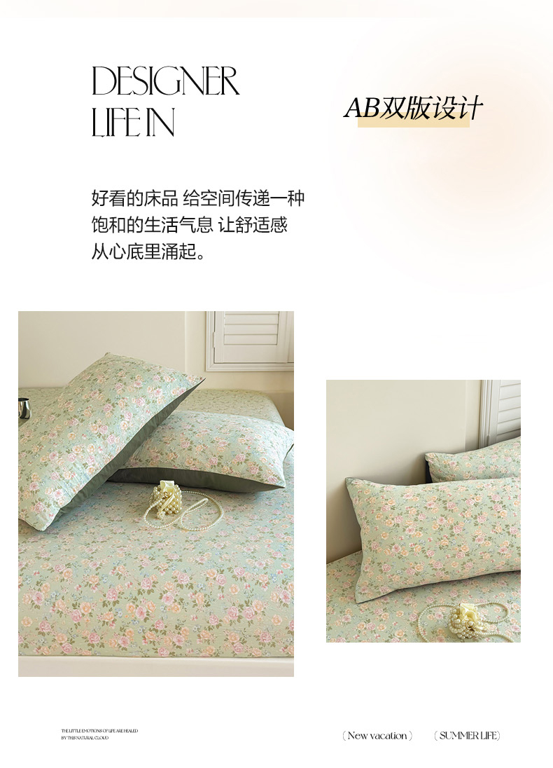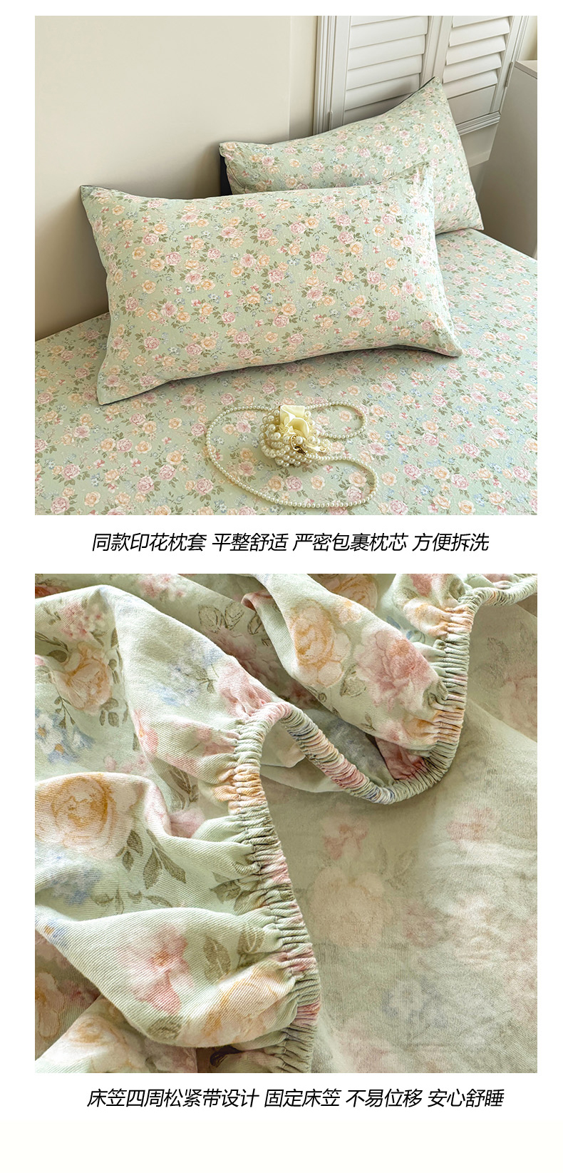 卢赛尔 2025新款水洗珍珠棉皱皱纱印花床笠 组合图
