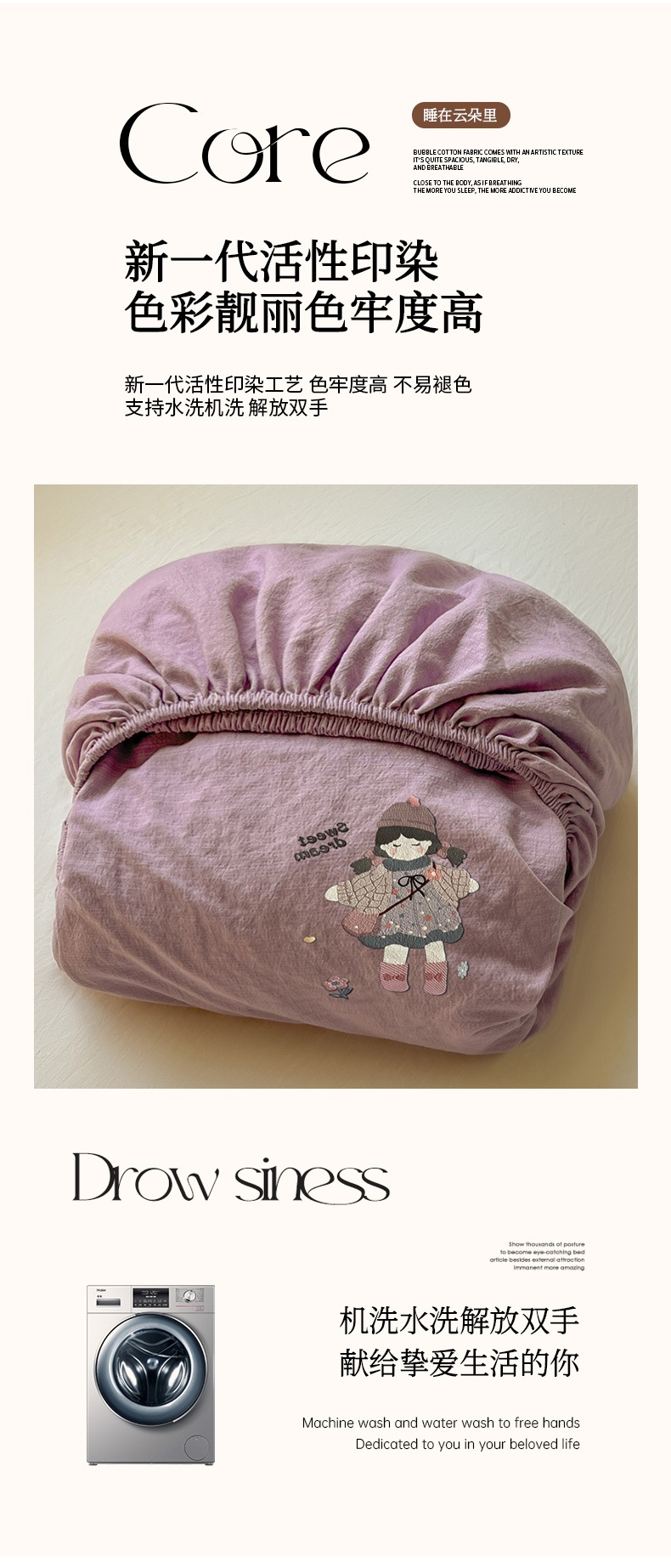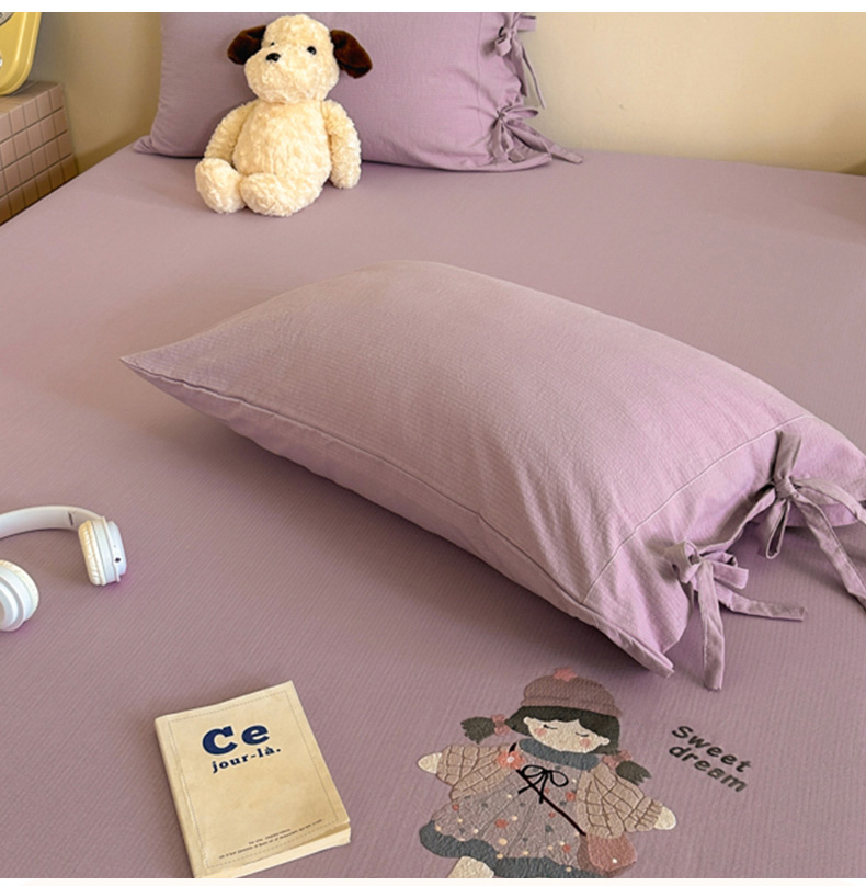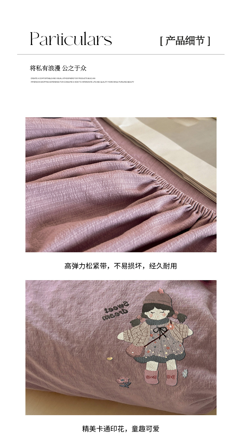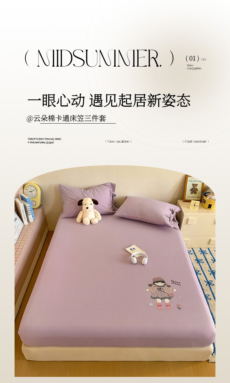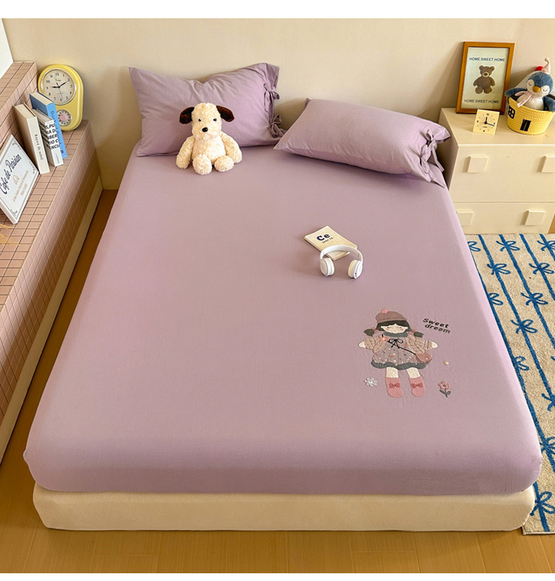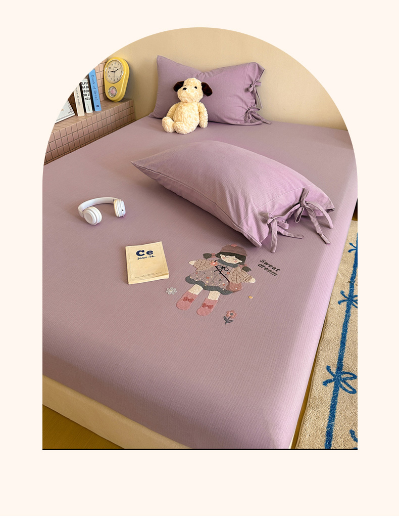商品名称:漫仙阁家纺 2025新品云朵棉可爱风卡通烫画单床笠枕套三件套 邻家女孩