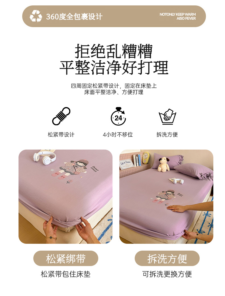 (总)漫仙阁家纺 2025新品云朵棉可爱风卡通烫画单床笠枕套三件套,小浣熊,邻家女孩,小青蛙,兔小姐,花仙子,狗狗家族