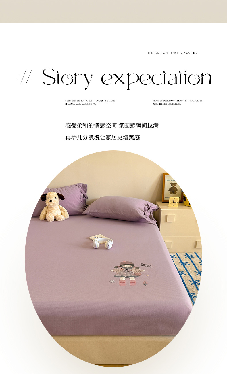 漫仙阁家纺 2025新品云朵棉可爱风卡通烫画单床笠枕套三件套 邻家女孩