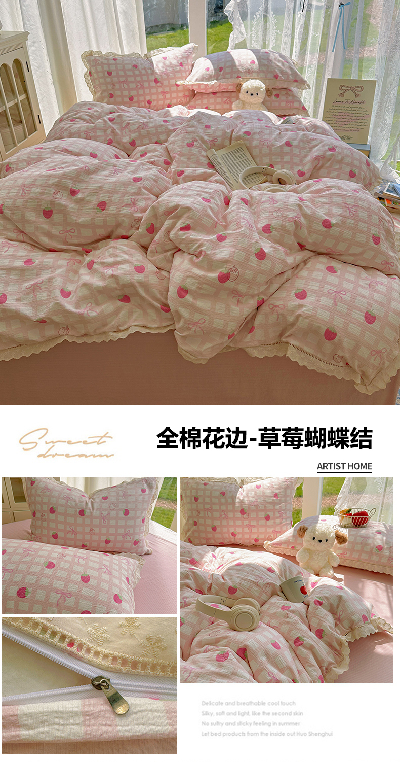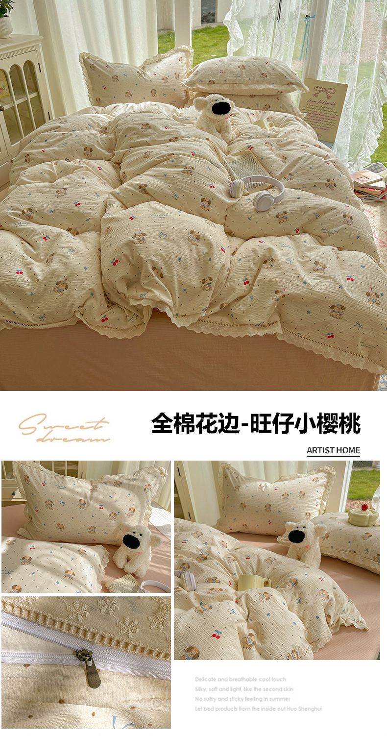 当前位置: 91家纺网 > 商品网购 > 床品套件 > 四件套 > 全棉普通四件套 > 颜选 2025新款全棉纯棉花边款四件套 全棉花边花期