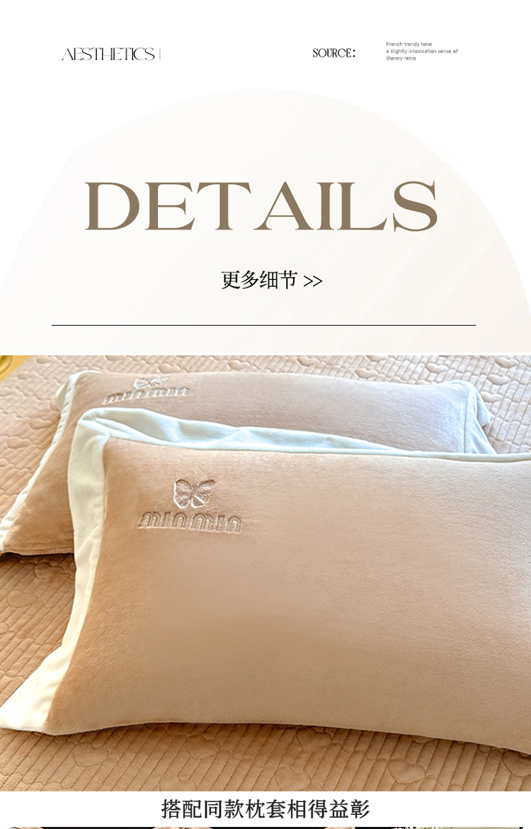 商品名称:(总)漫布云2025秋冬简约轻奢款230g全消光牛奶绒兔毛绒贴布绣花夹棉床盖款四件套纯色蕾丝花边刺绣床裙款床盖--心愿系列