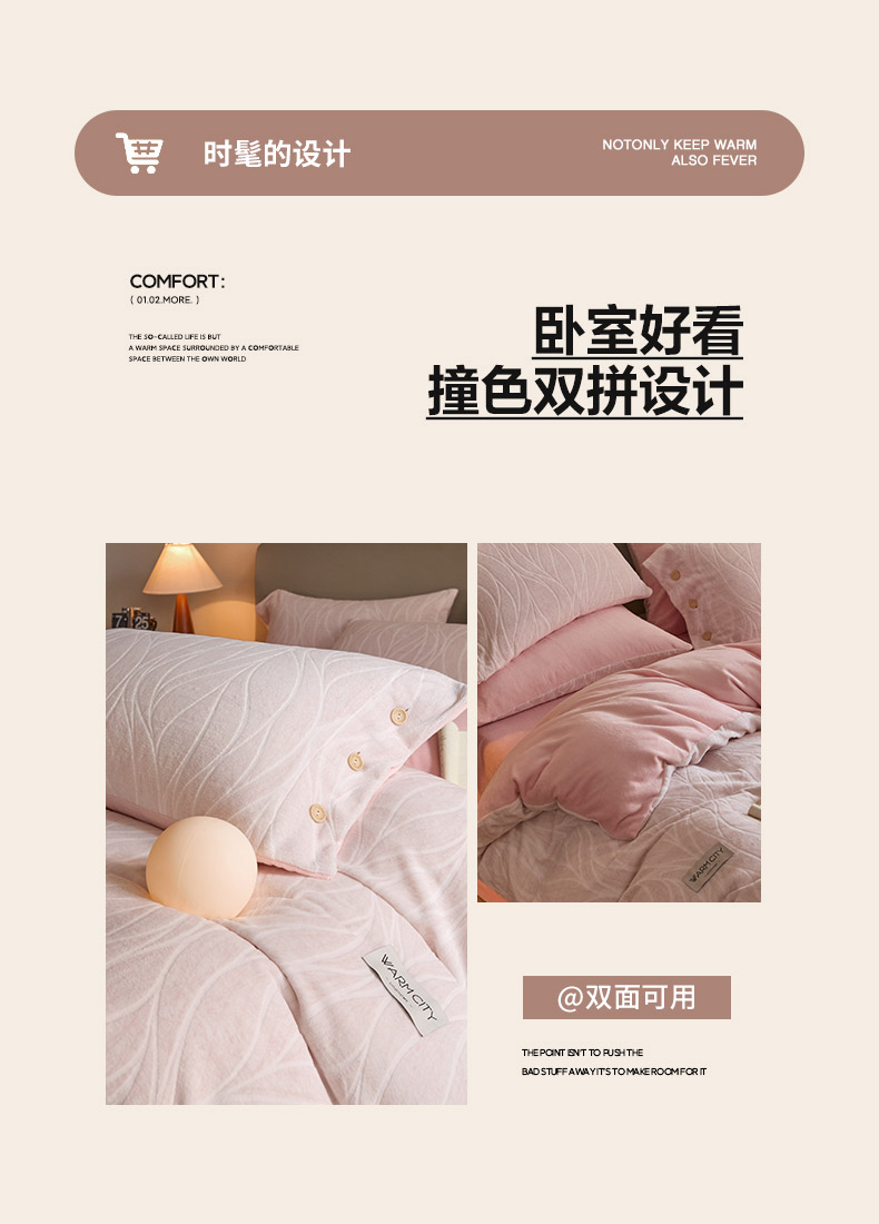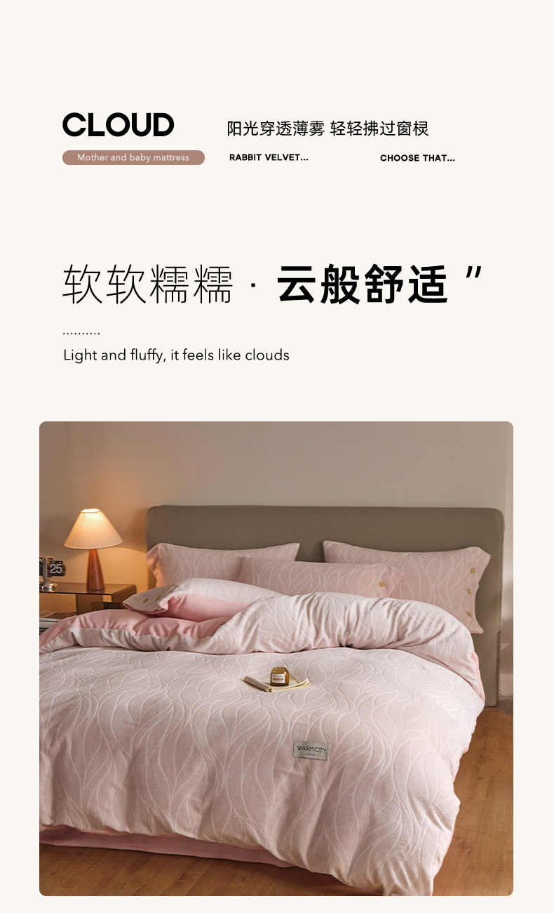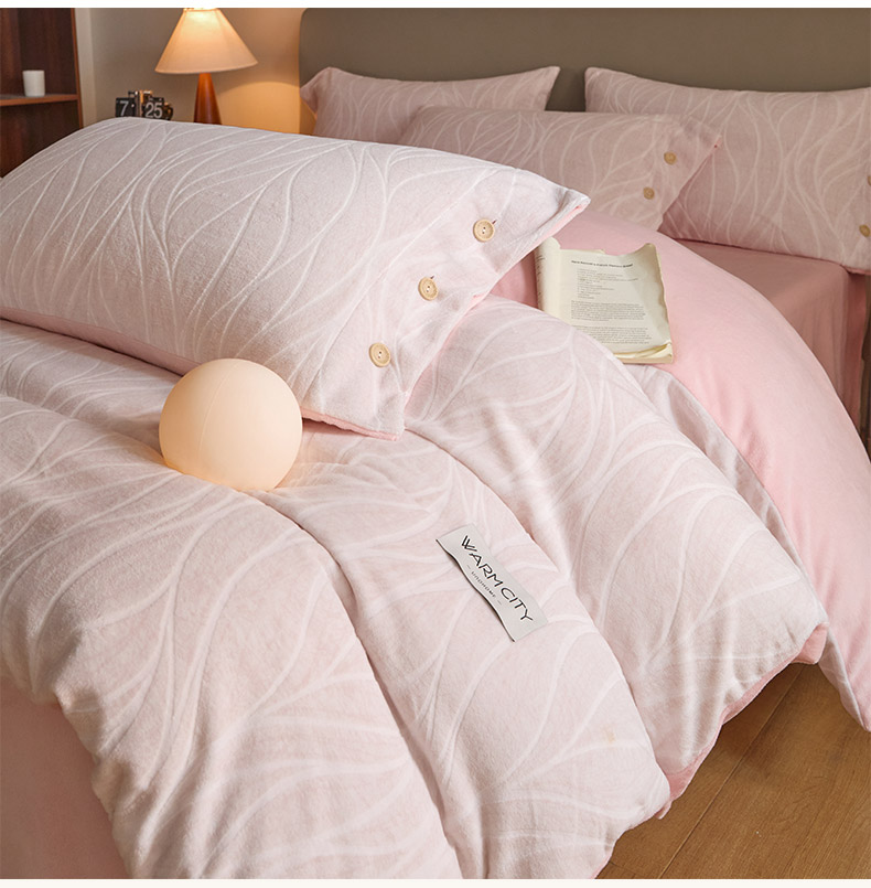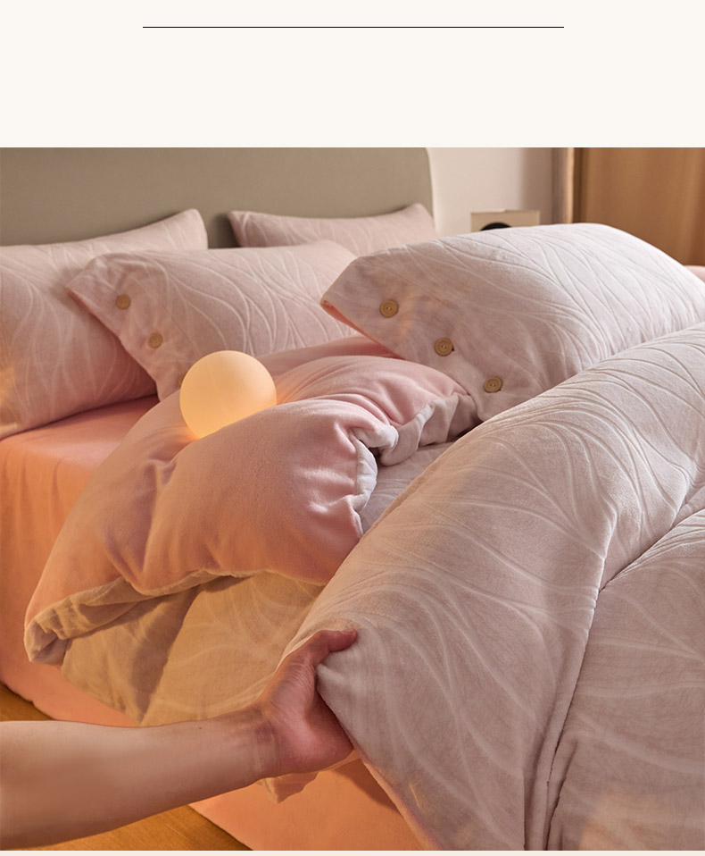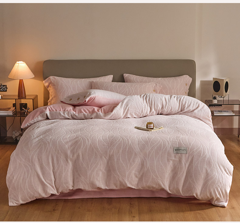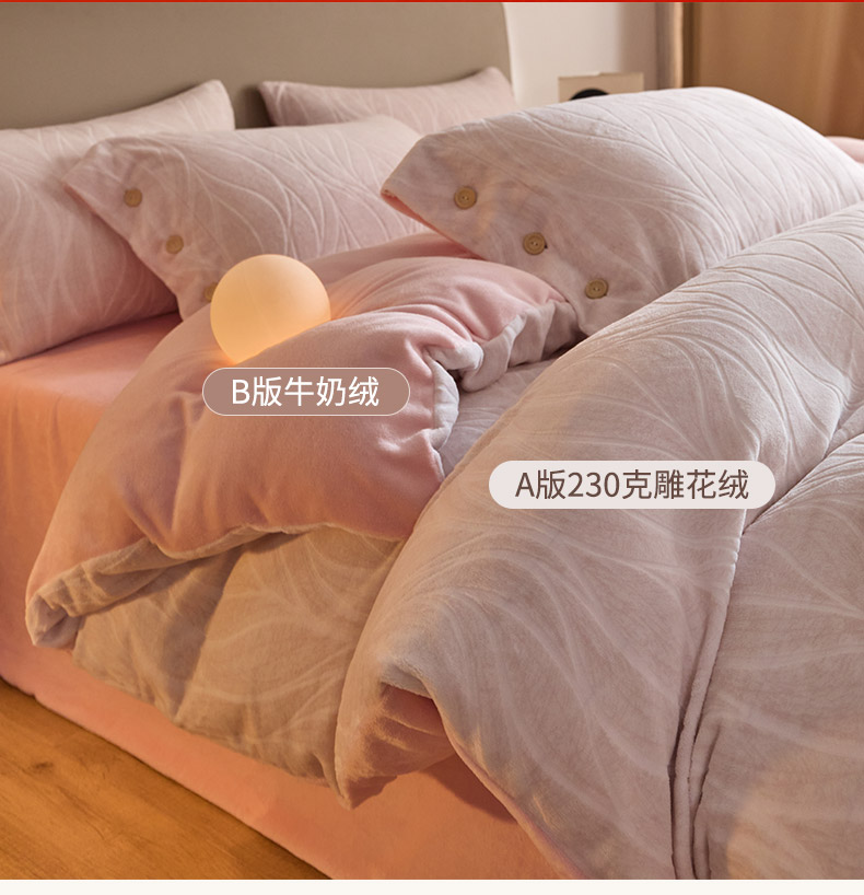 绒城 绒城 2025新款 纽扣工艺230克雕花绒四件套牛奶绒四件套 - 曲线系列 曲线粉