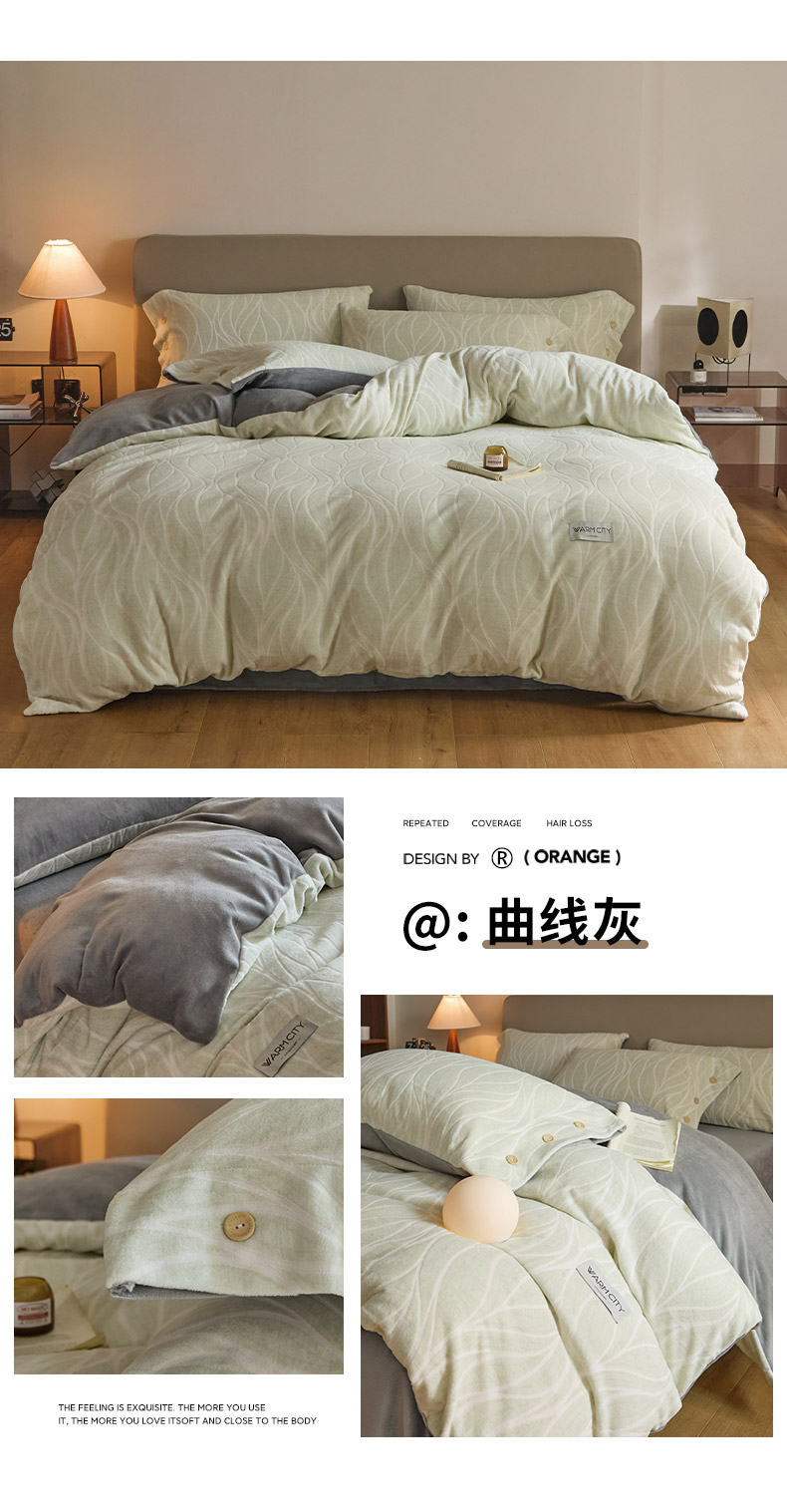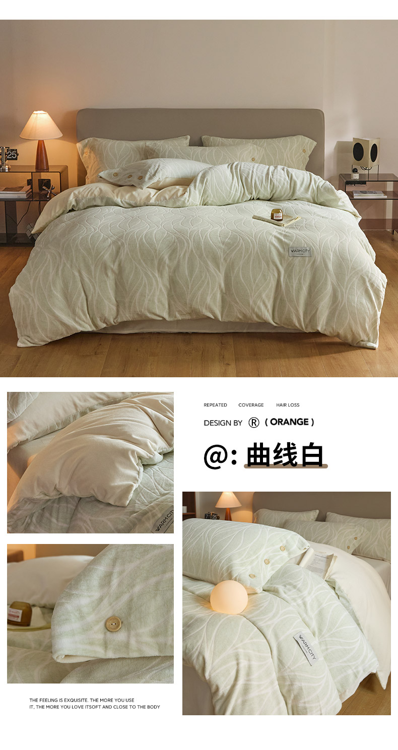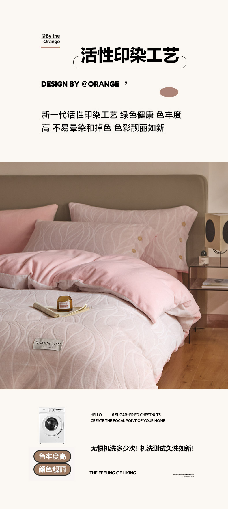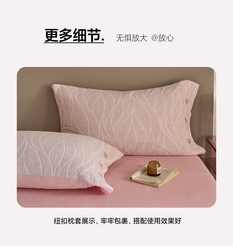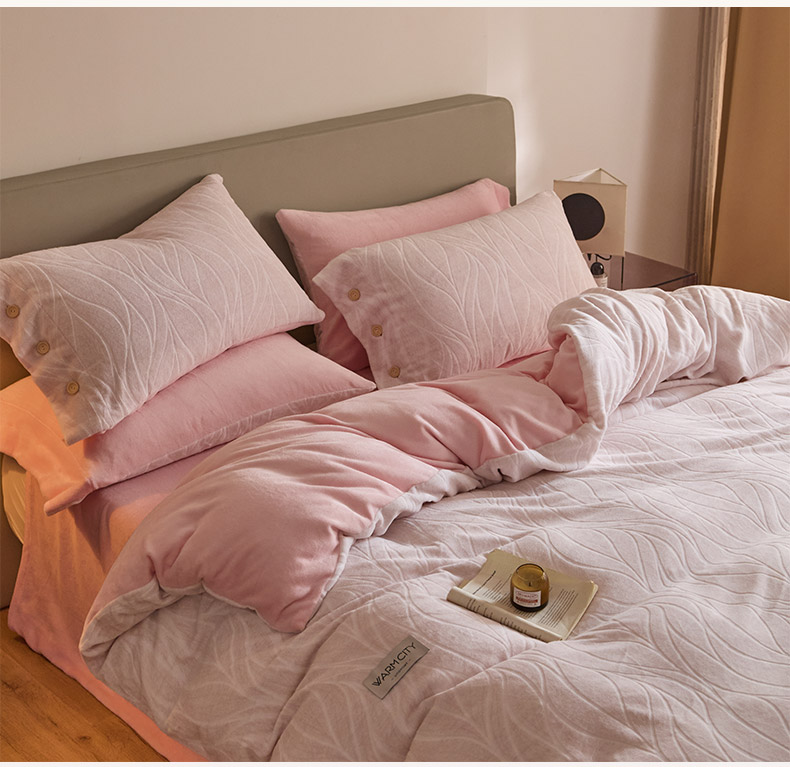 绒城 绒城 2025新款 纽扣工艺230克雕花绒四件套牛奶绒四件套 - 曲线系列 曲线粉