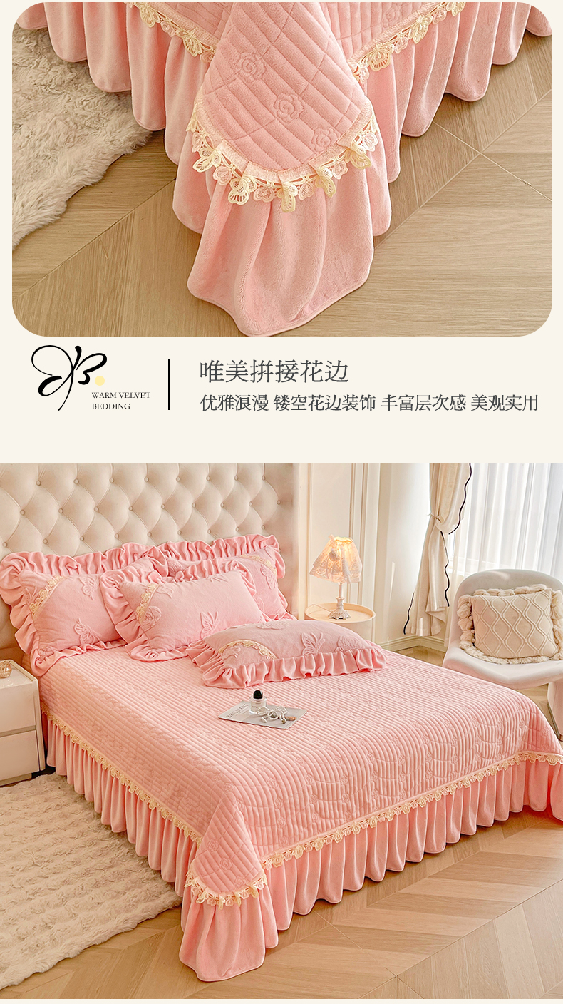(总)宜凡家纺 2025新款兔绒提花牛奶绒夹棉床裙四件套,爱心 少女粉,爱心 粉紫,爱心 驼色,蝶舞 大红,蝶舞 米色,蝶舞 浅紫,蝶舞 玉色,简爱 苍青,简爱 豆沙紫,简爱 玉色,樱桃 苍青,樱桃 豆沙紫,樱桃 奶油白