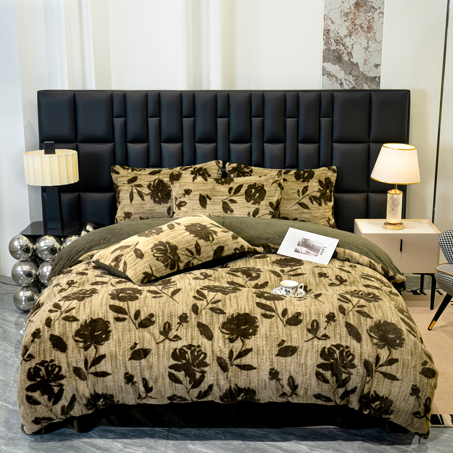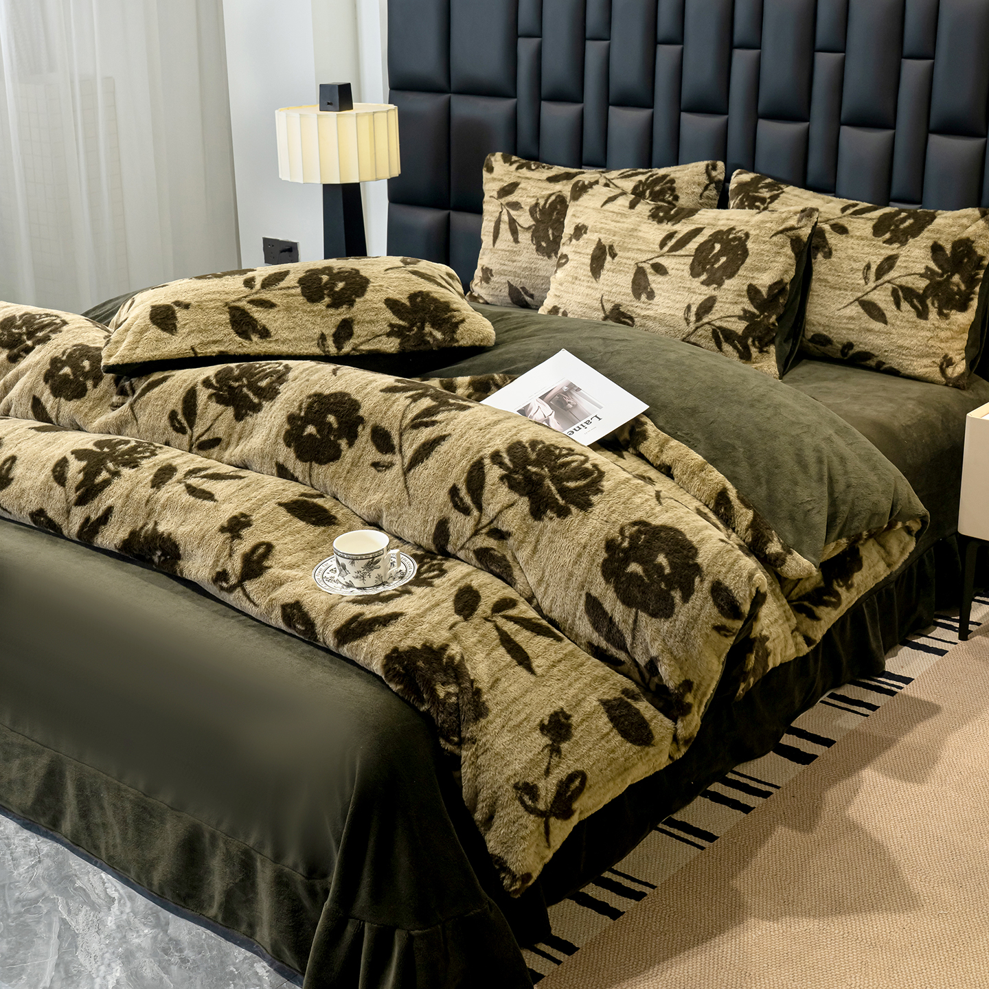 豫见家纺 2025新款法式美拉德高克重兔毛床单款四件套兔毛简单款 繁花