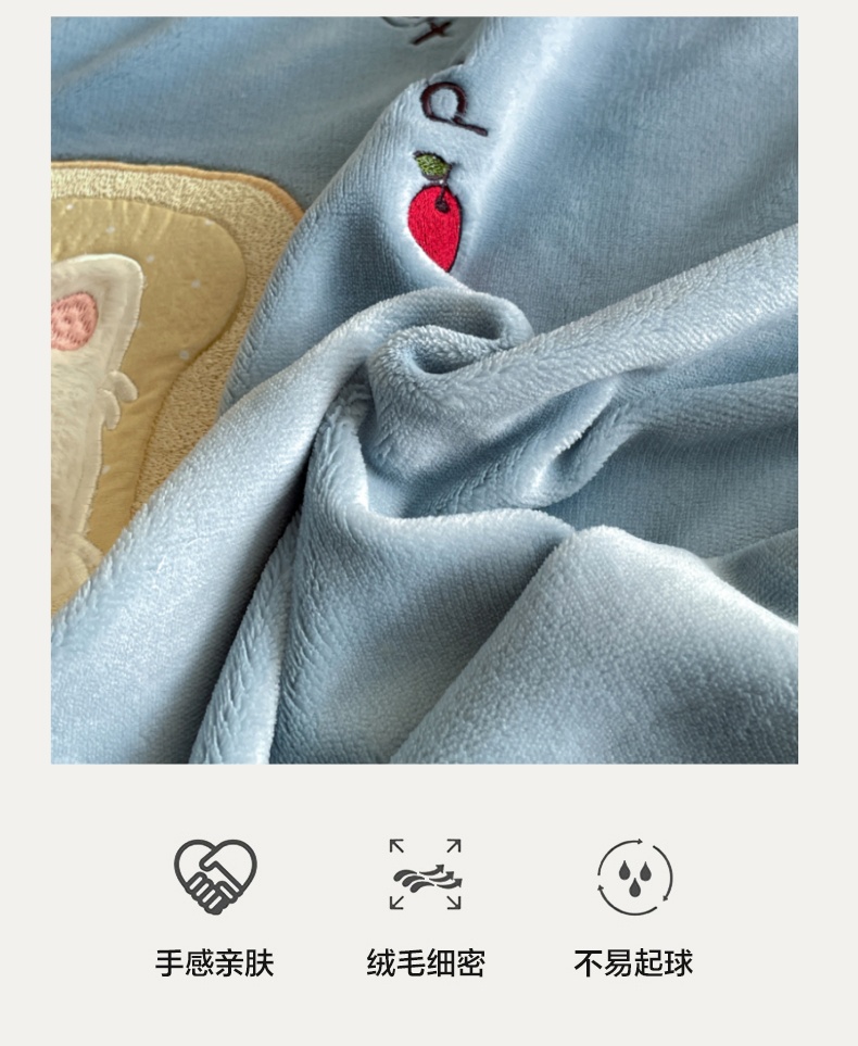 • 91家纺网 家纺一手货源 找家纺 梦舒羽 2025新款A类230克全消光刺绣贴布牛奶绒床笠加绒法兰绒床垫保护罩床罩 吐司萌宠-高贵蓝
