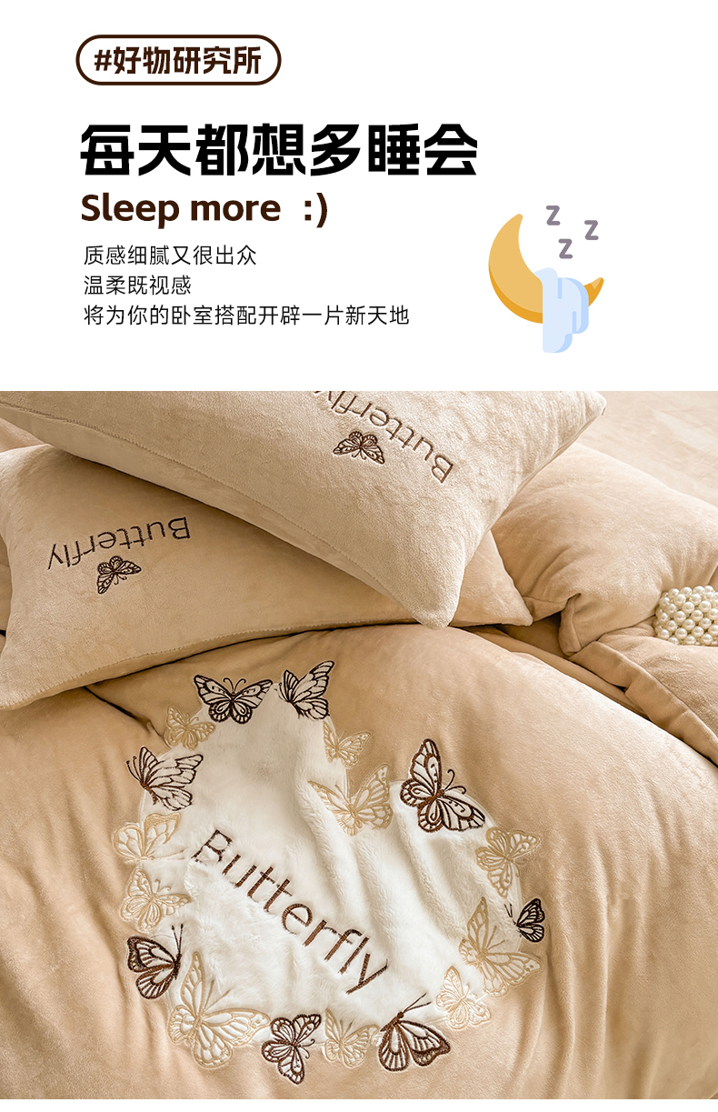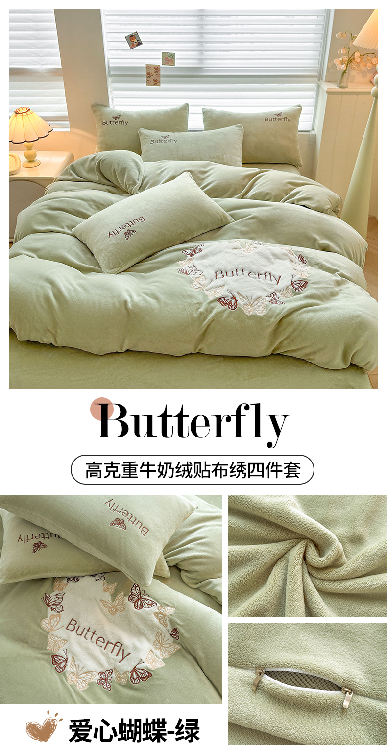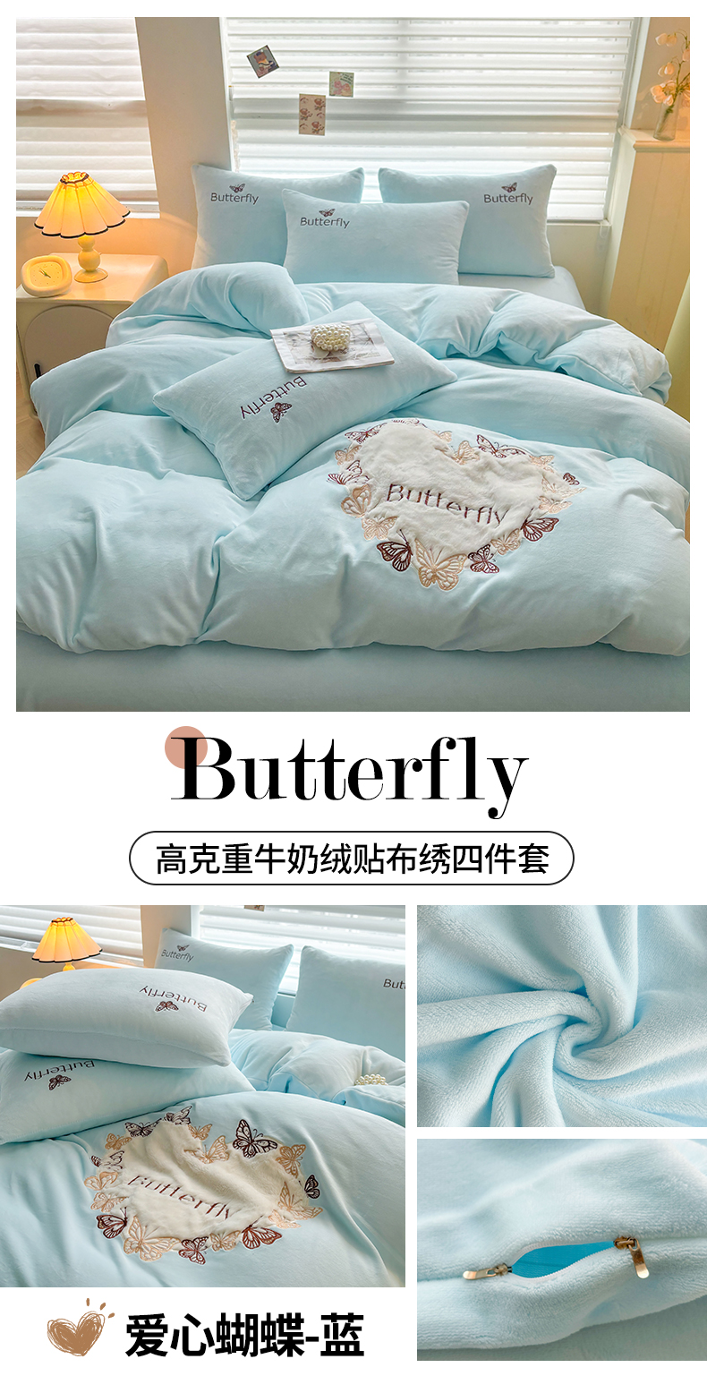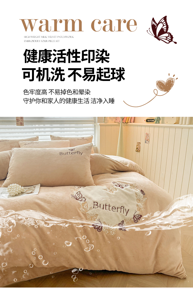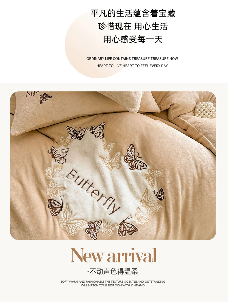 当前位置: 91家纺网 > 商品网购 > 床品套件 > 四件套 > 牛奶绒四件套 > 义博家纺 2025新款高克重牛奶绒蝴蝶贴布绣四件套 爱心蝴蝶-咖