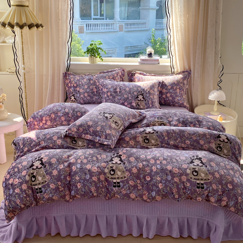 富之航家纺 2025秋冬新款牛奶绒印花床盖四件套 花间梦