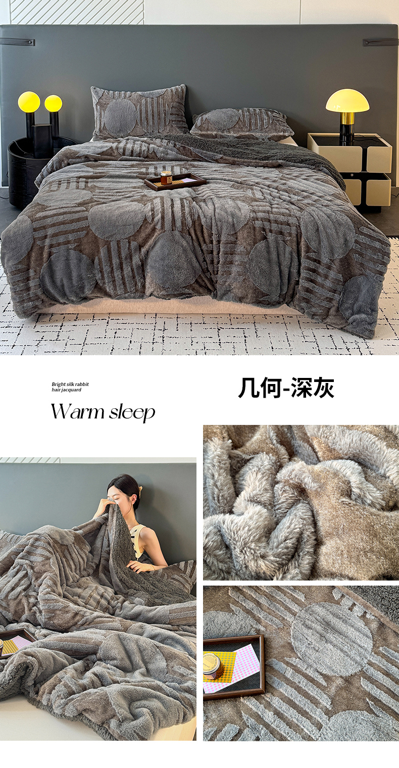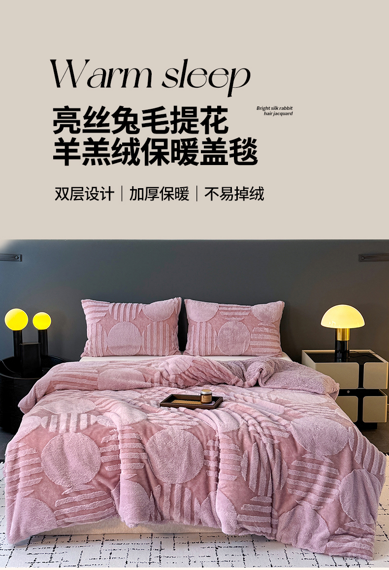 (总)枋梢家纺 2025新款亮丝兔毛绒兔毛提花北欧几何羊羔绒 双层加厚保暖盖毯 居家午睡保暖毯,几何-粉色,几何-咖色,几何-绿色,几何-米黄,几何-浅灰,几何-深灰,几何-驼色,几何-紫色,包装