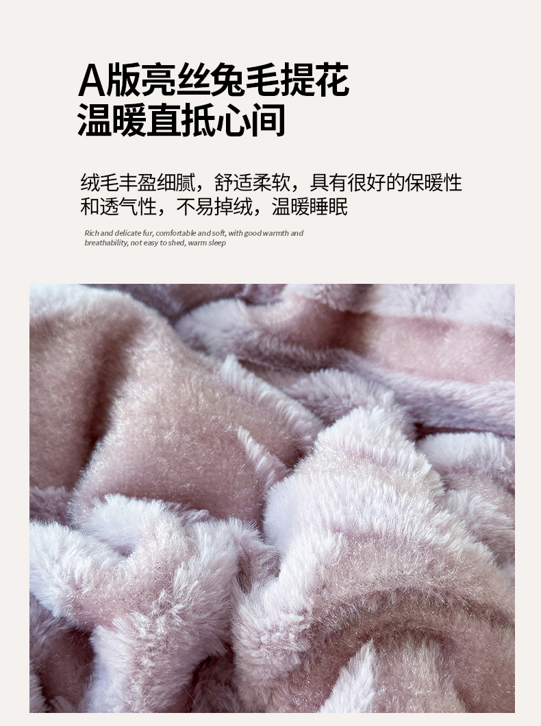 (总)枋梢家纺 2025新款亮丝兔毛绒兔毛提花暖居花漾羊羔绒 双层加厚保暖盖毯 居家午睡保暖毯,花漾-粉色,花漾-咖色,花漾-绿色,花漾-米黄,花漾-浅灰,花漾-深灰,花漾-驼色,花漾-紫色,包装