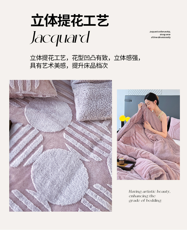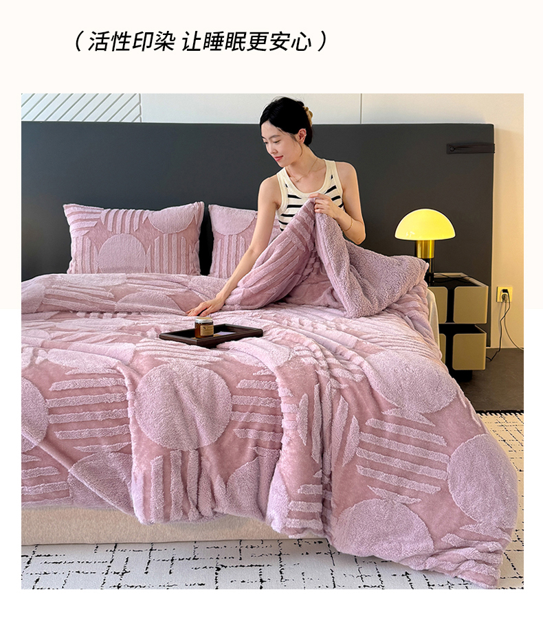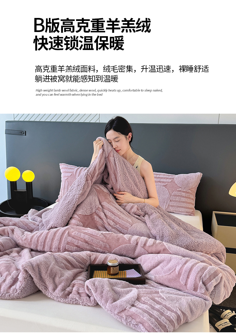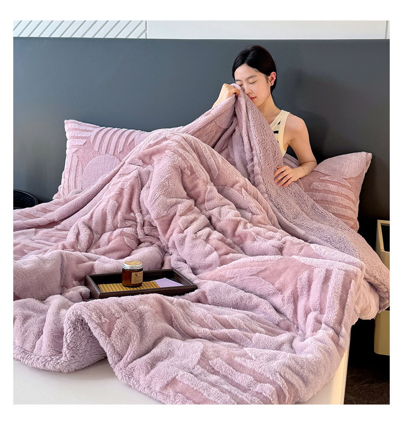 商品名称:枋梢家纺 2025新款亮丝兔毛绒兔毛提花北欧几何羊羔绒 双层加厚保暖盖毯 居家午睡保暖毯 几何-紫色