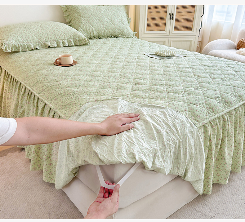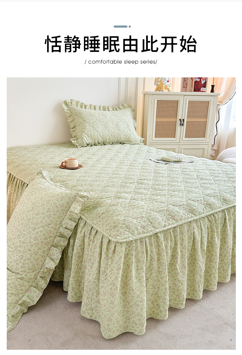 (总)十个点家纺 2025新款加厚磨毛木棉床裙三件套-格小格系列,格小格-粉,格小格-金驼,格小格-咖,格小格-兰,格小格-绿,格小格-玉