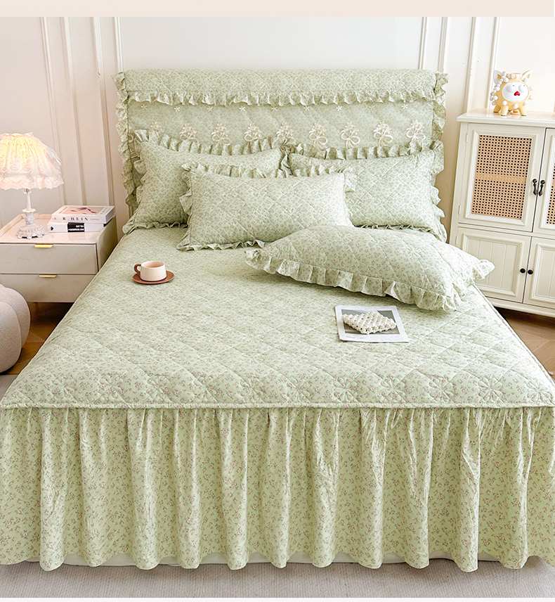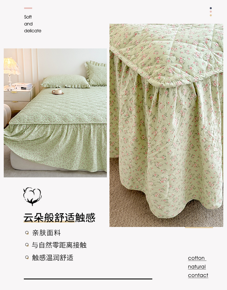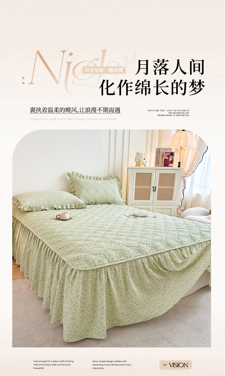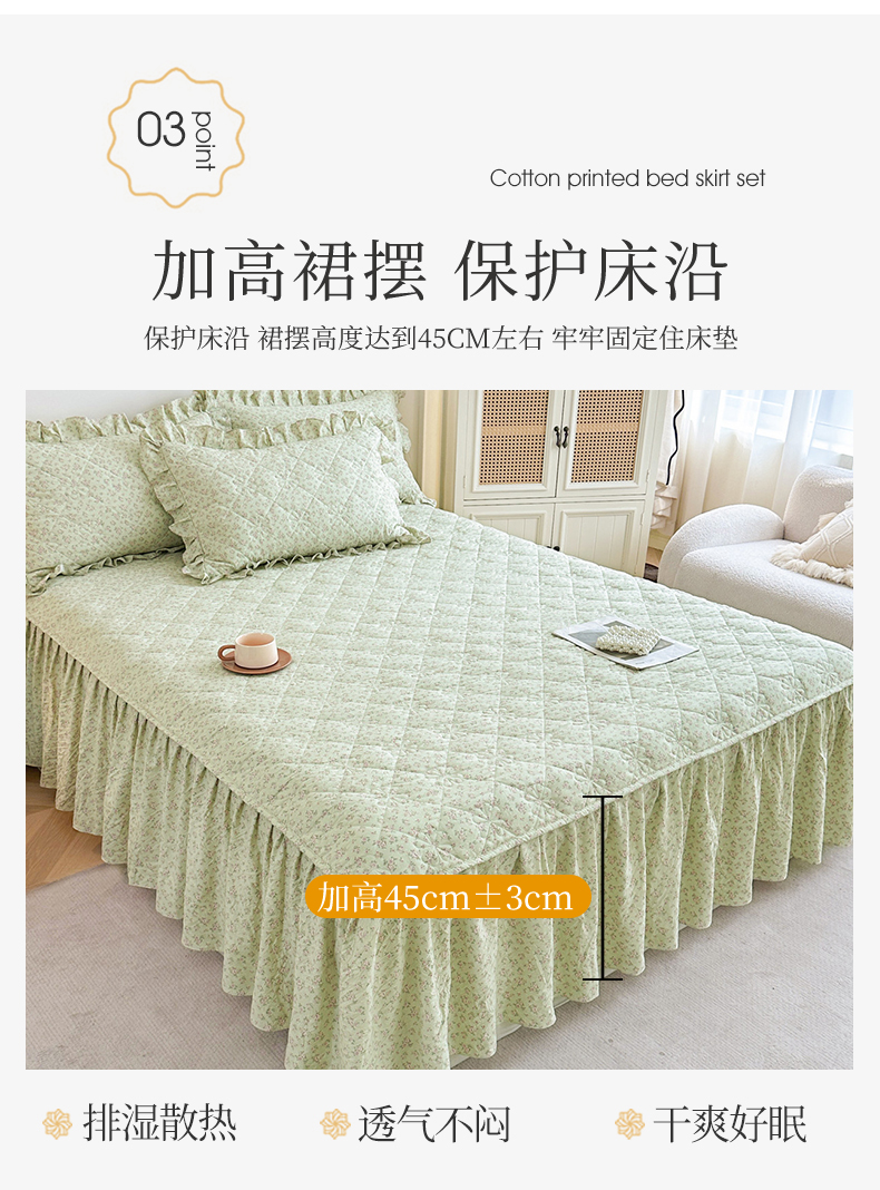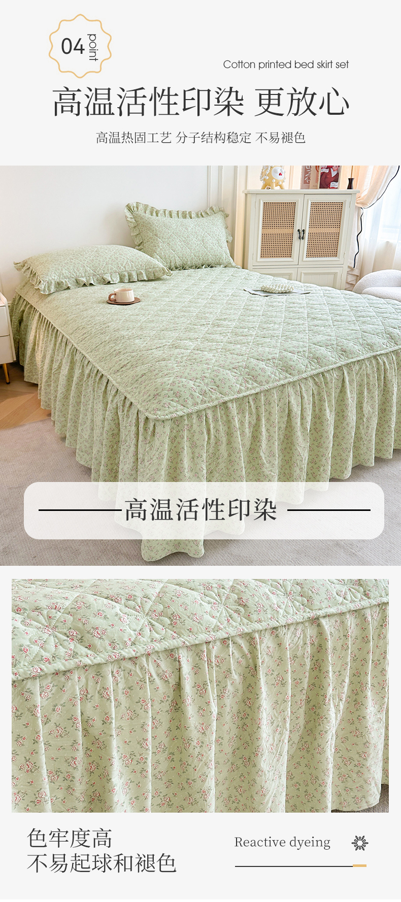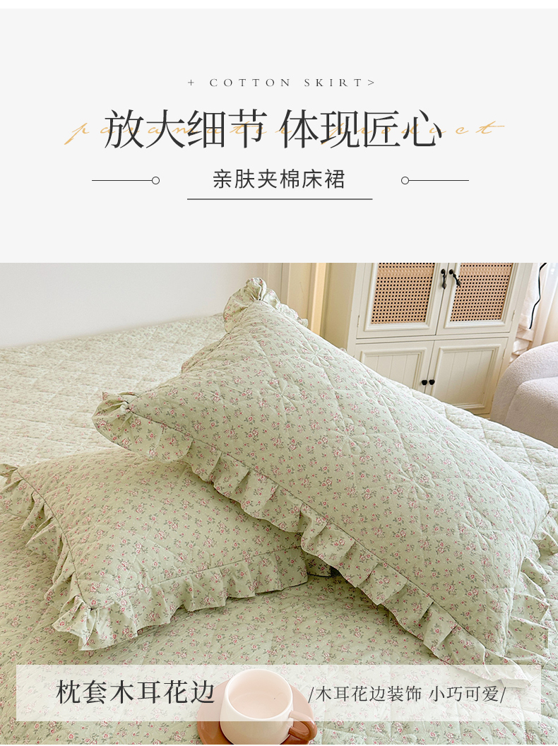 十个点家纺 2025新款加厚磨毛木棉床裙三件套-绫罗系列 格桑花