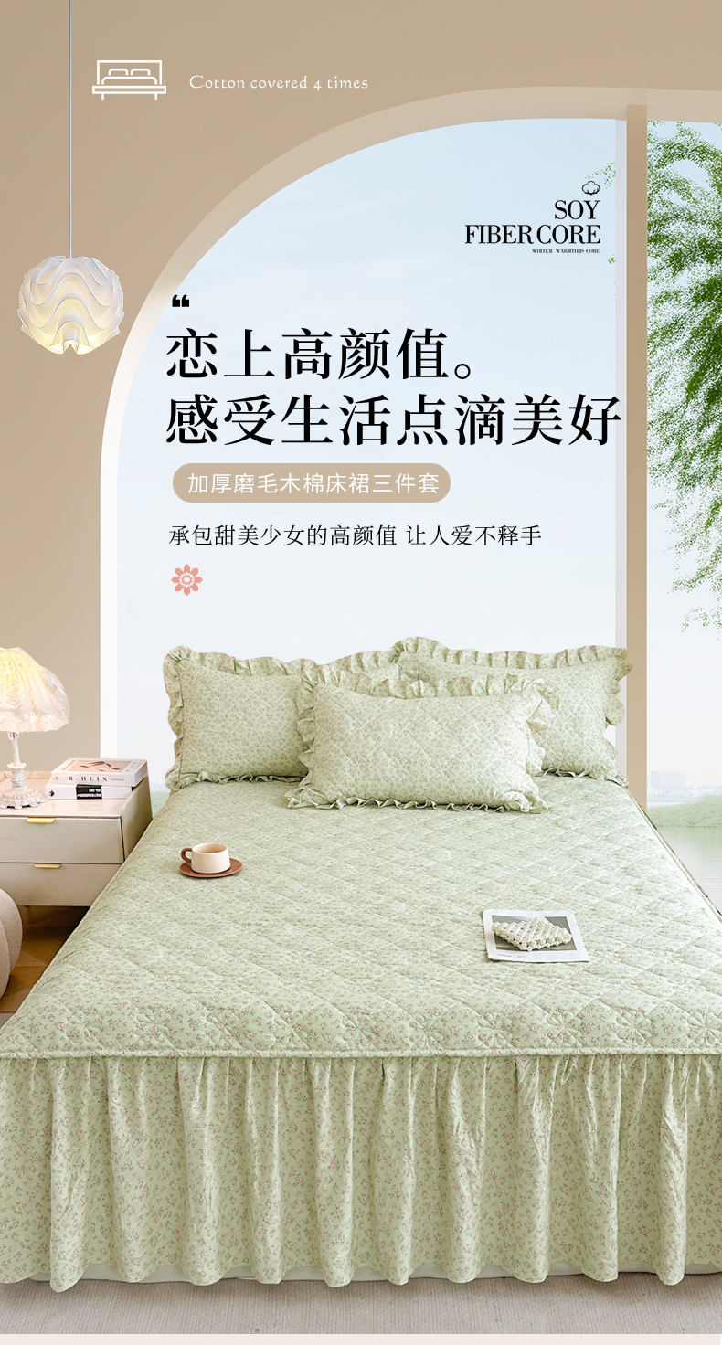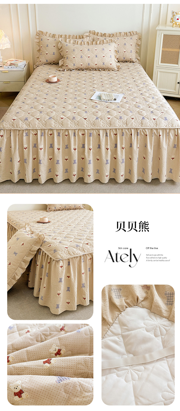 (总)十个点家纺 2025新款加厚磨毛木棉床裙三件套-绫罗系列,爱意萌萌,贝贝熊,格桑花,海棠花,蝴蝶兔,花千骨,米兰,木棉花,山茶花,同心结,心相印,心愿-米