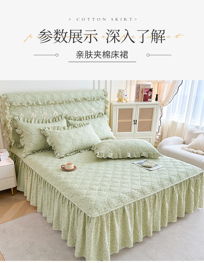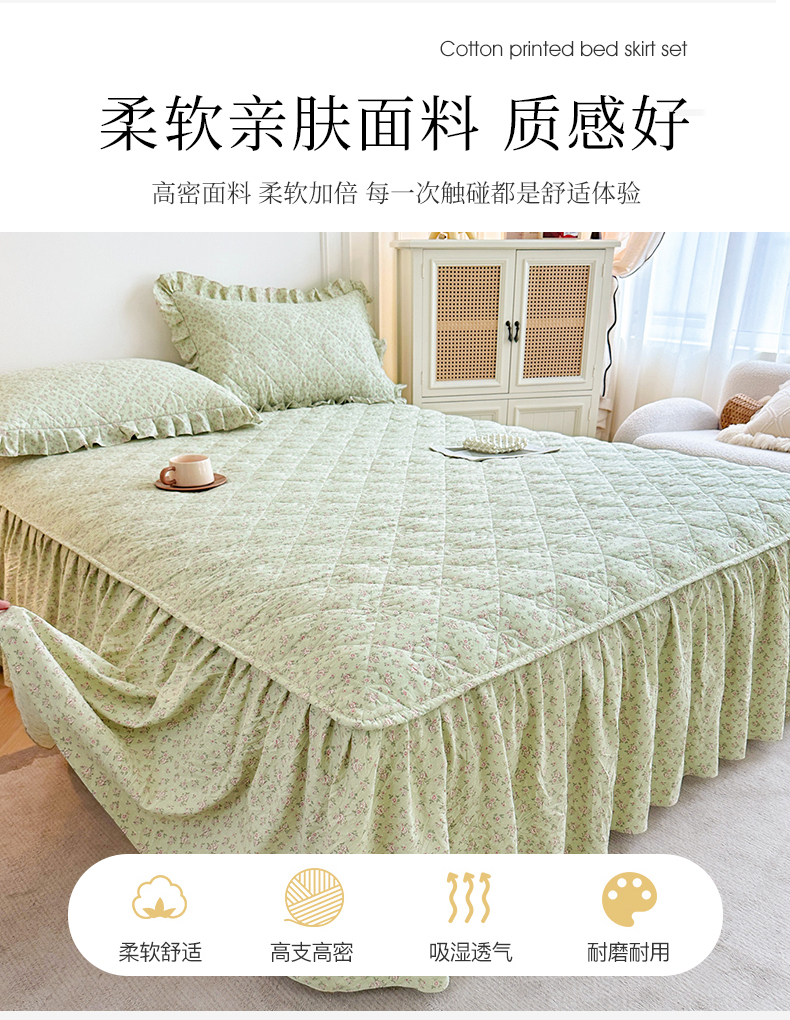 商品名称:十个点家纺 2025新款加厚磨毛木棉床裙三件套-绫罗系列 格桑花