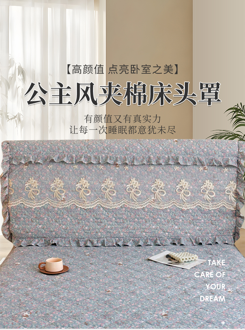(总)十个点家纺 2025新款公主风夹棉床头罩-绫罗系列,爱意萌萌,贝贝熊,格桑花,海棠花,蝴蝶兔,花千骨,米兰,木棉花,山茶花,同心结,心相印,心愿-米