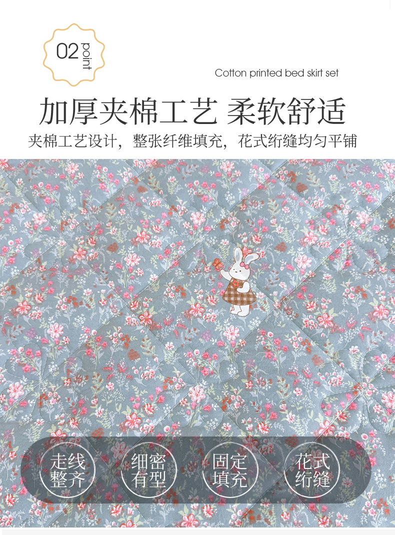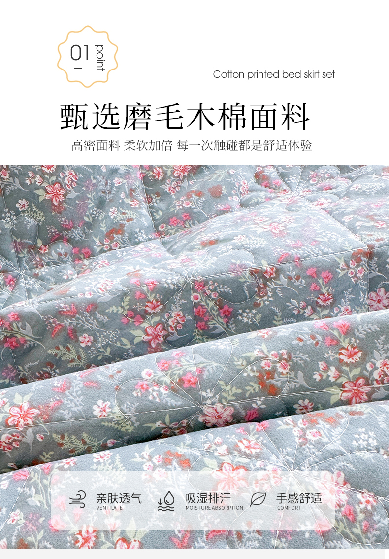 (总)十个点家纺 2025新款加厚磨毛木棉床裙三件套-绫罗系列,爱意萌萌,贝贝熊,格桑花,海棠花,蝴蝶兔,花千骨,米兰,木棉花,山茶花,同心结,心相印,心愿-米