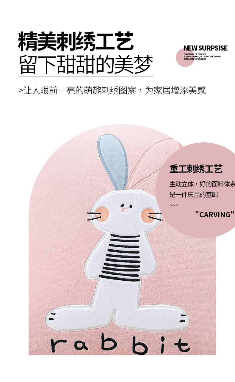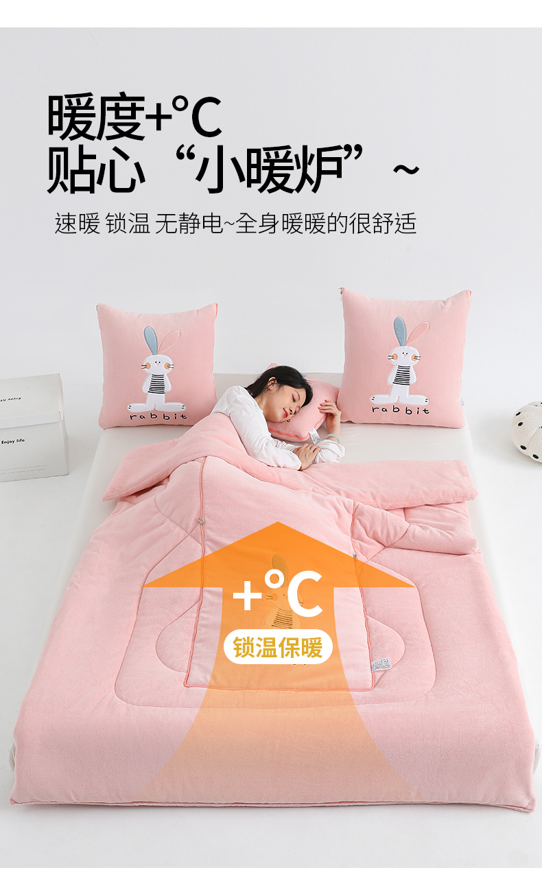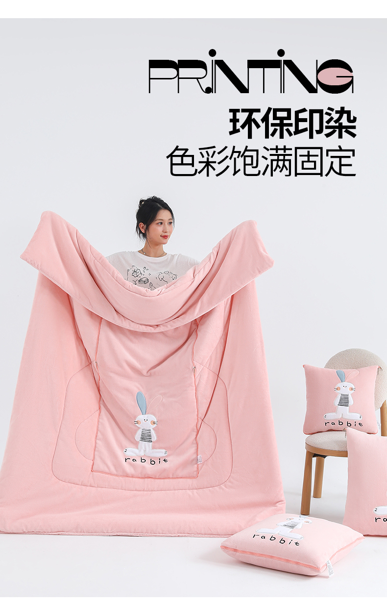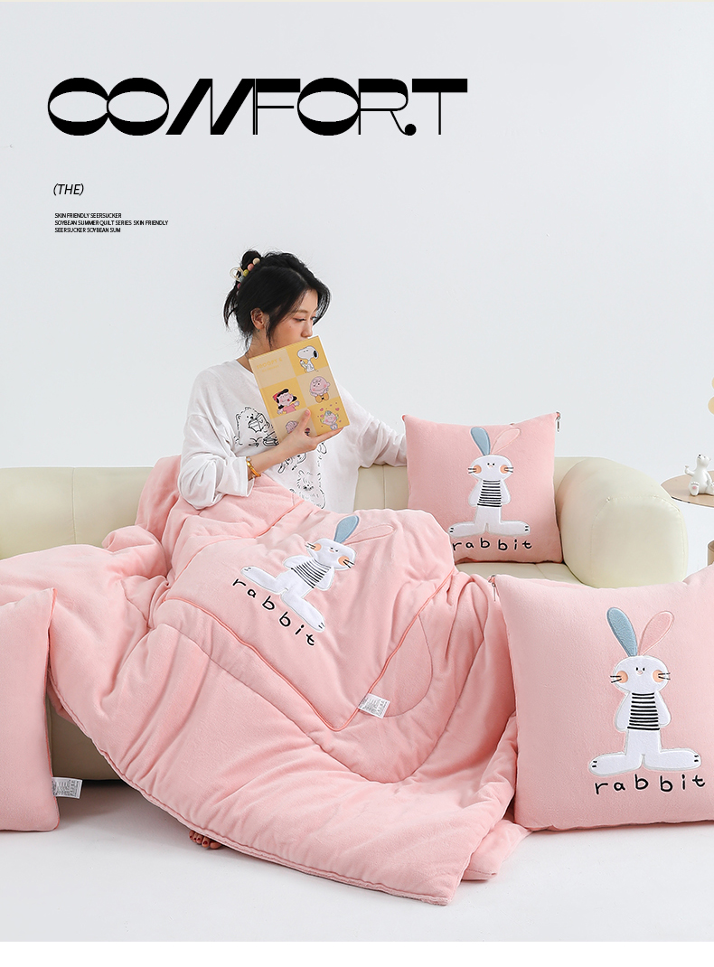 商品名称:翰轩家居 2025新款卡通牛奶绒贴布绣抱枕被-梦幻兔系列 梦幻兔-樱花粉