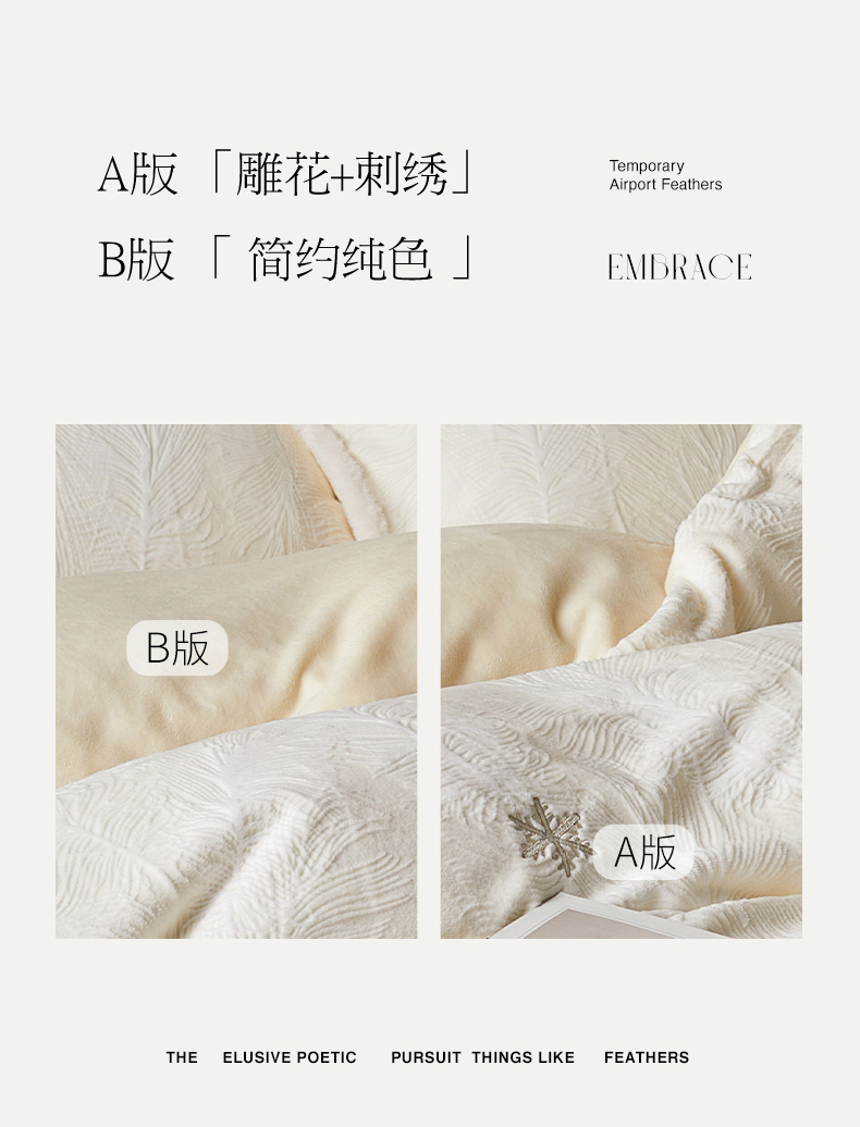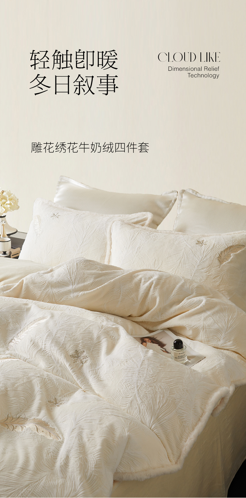 当前位置: 91家纺网 > 商品网购 > 床品套件 > 四件套 > 牛奶绒四件套 > 风向标家纺 2025新款A类立体烂花牛奶绒四件套-羽脉系列(风格一) 轻雕羽脉-米月白