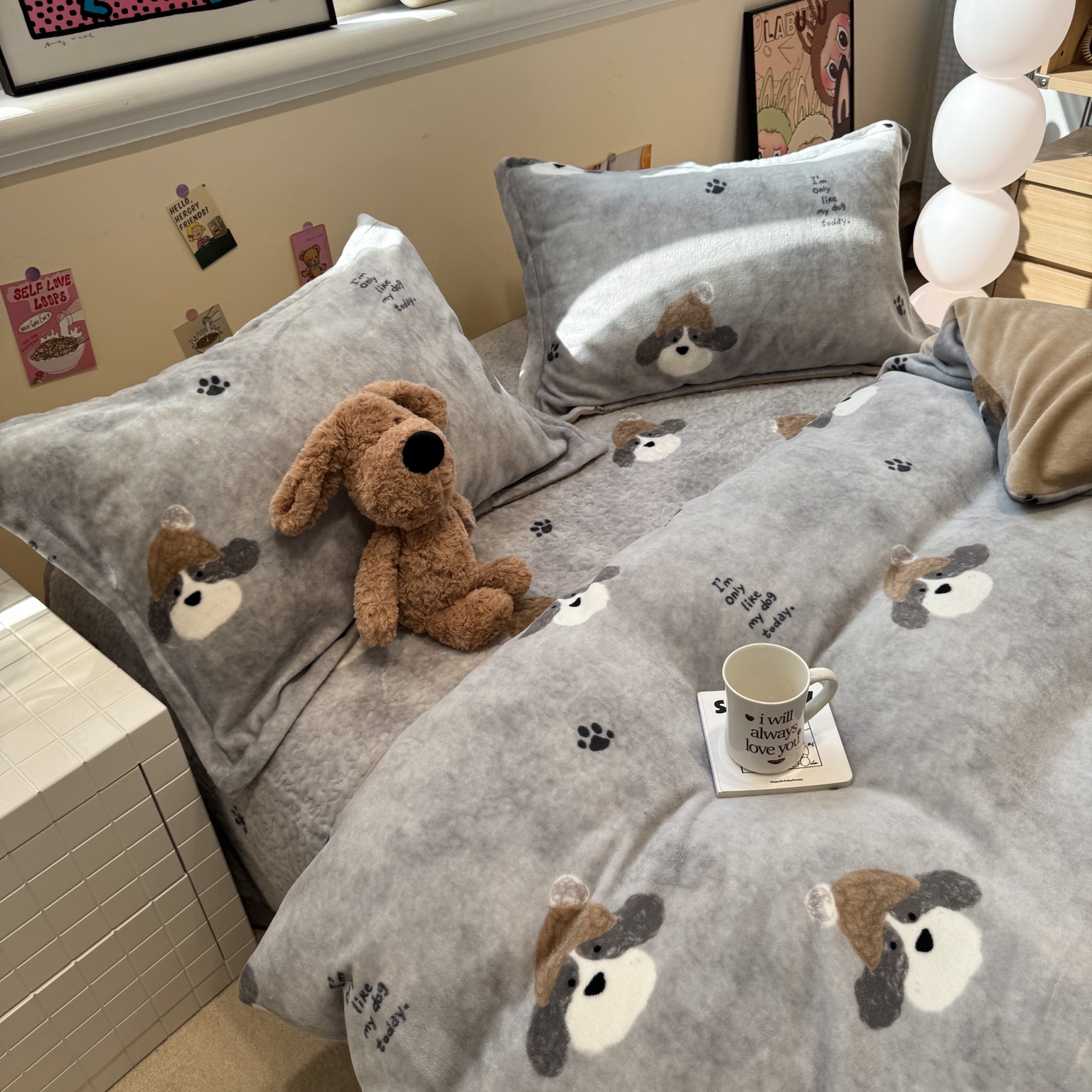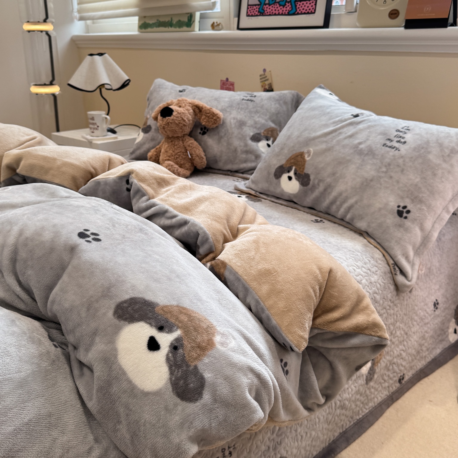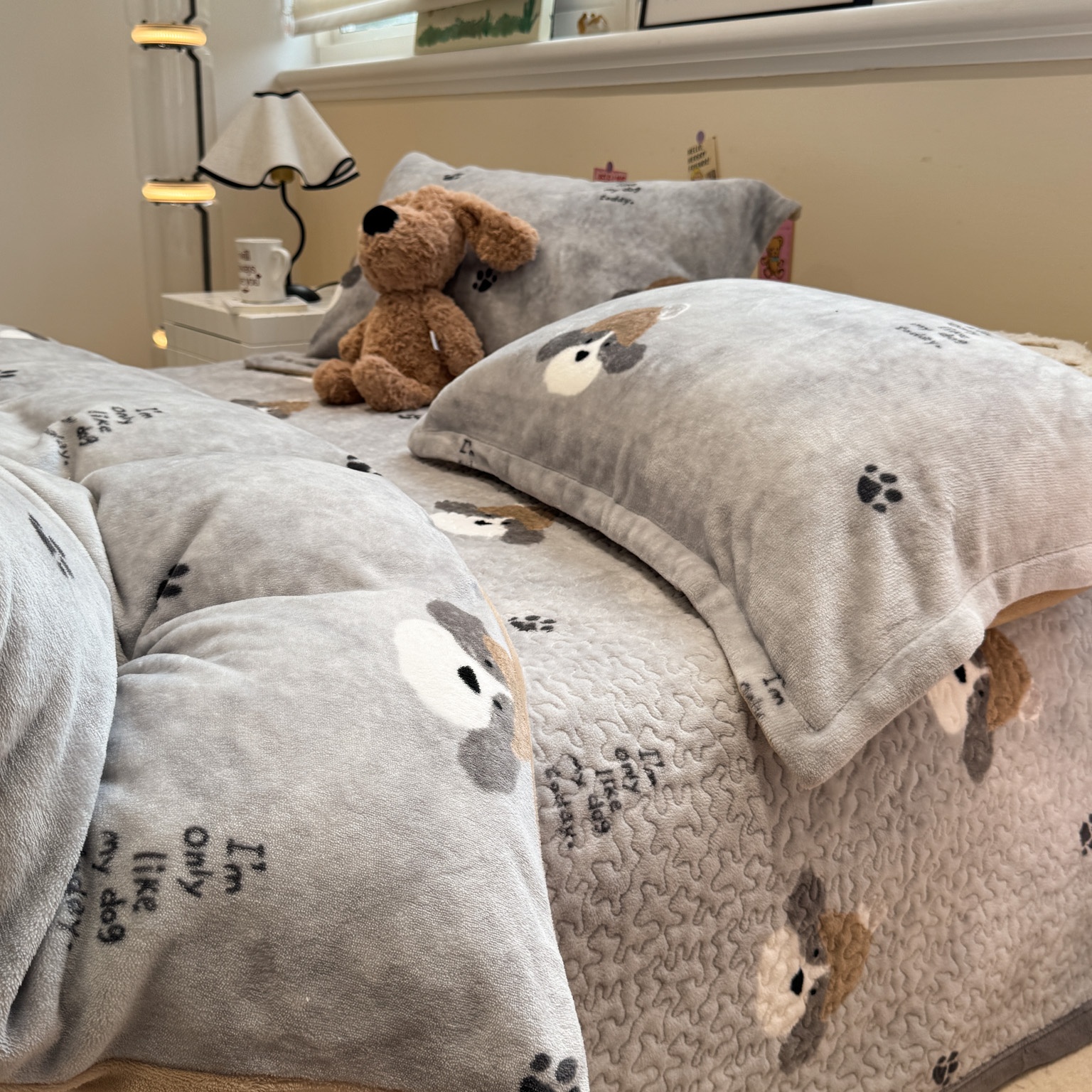潘朵拉 2025新款ins风牛奶绒床盖四件套 小狗杰西