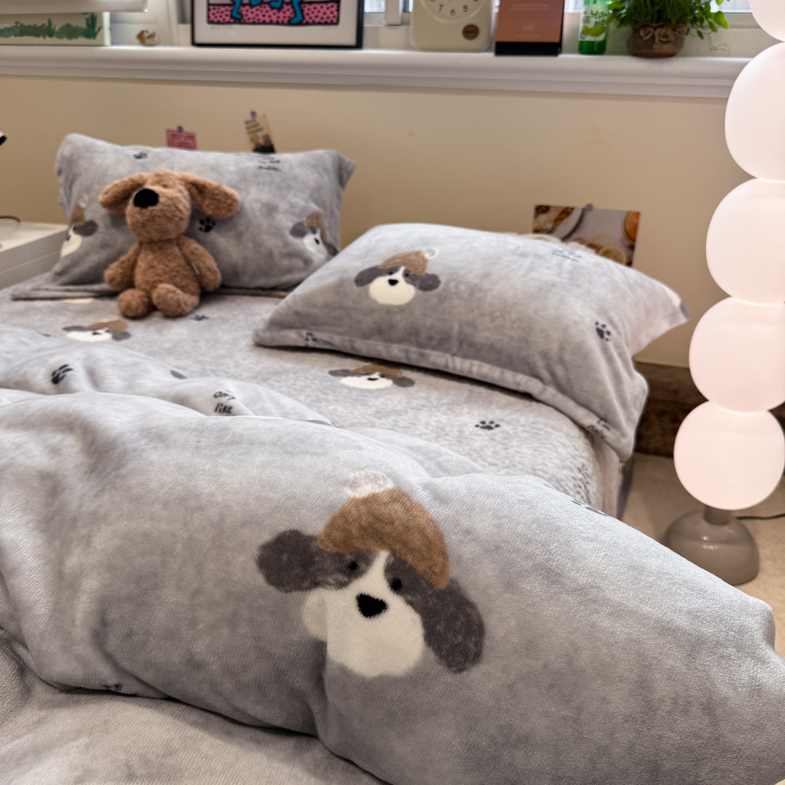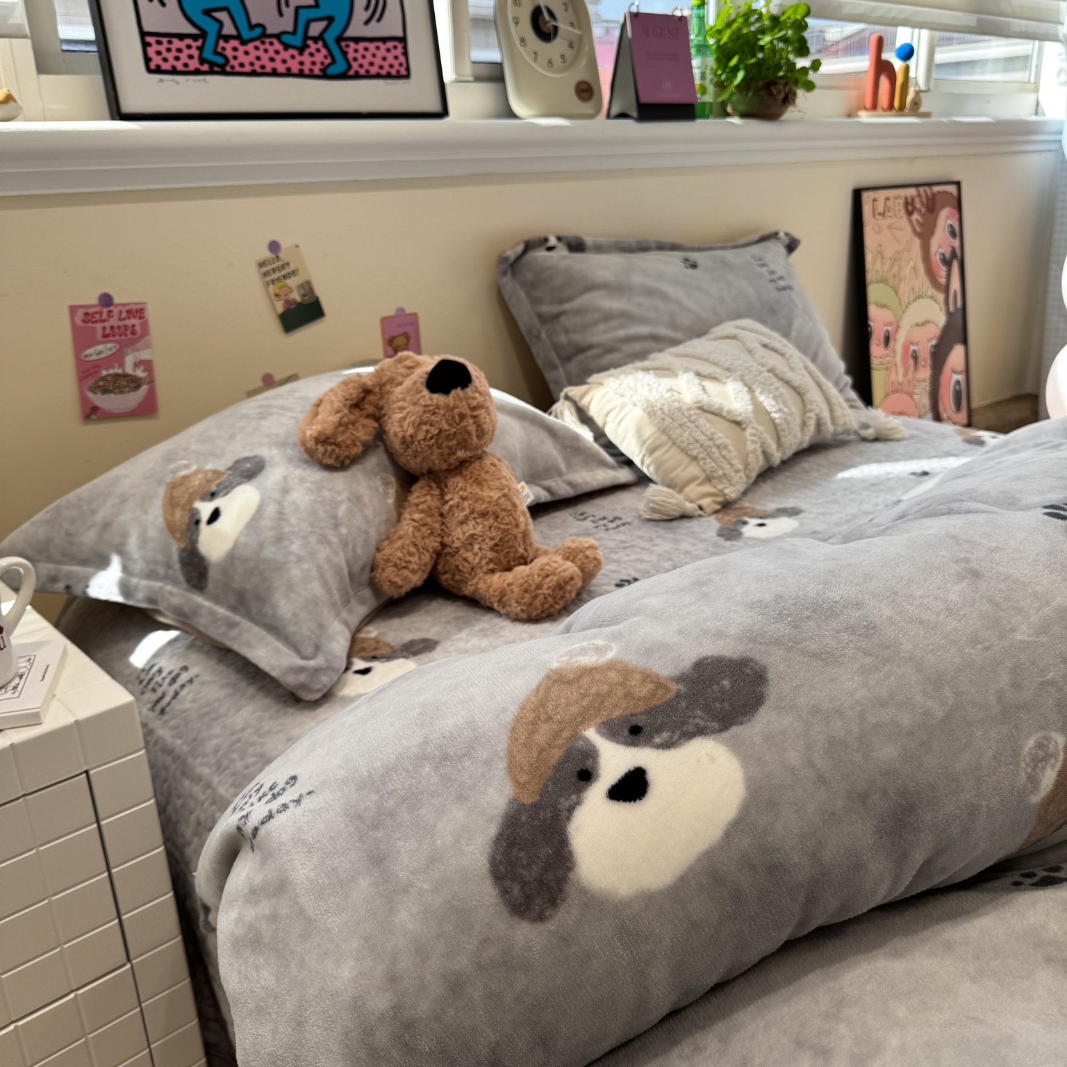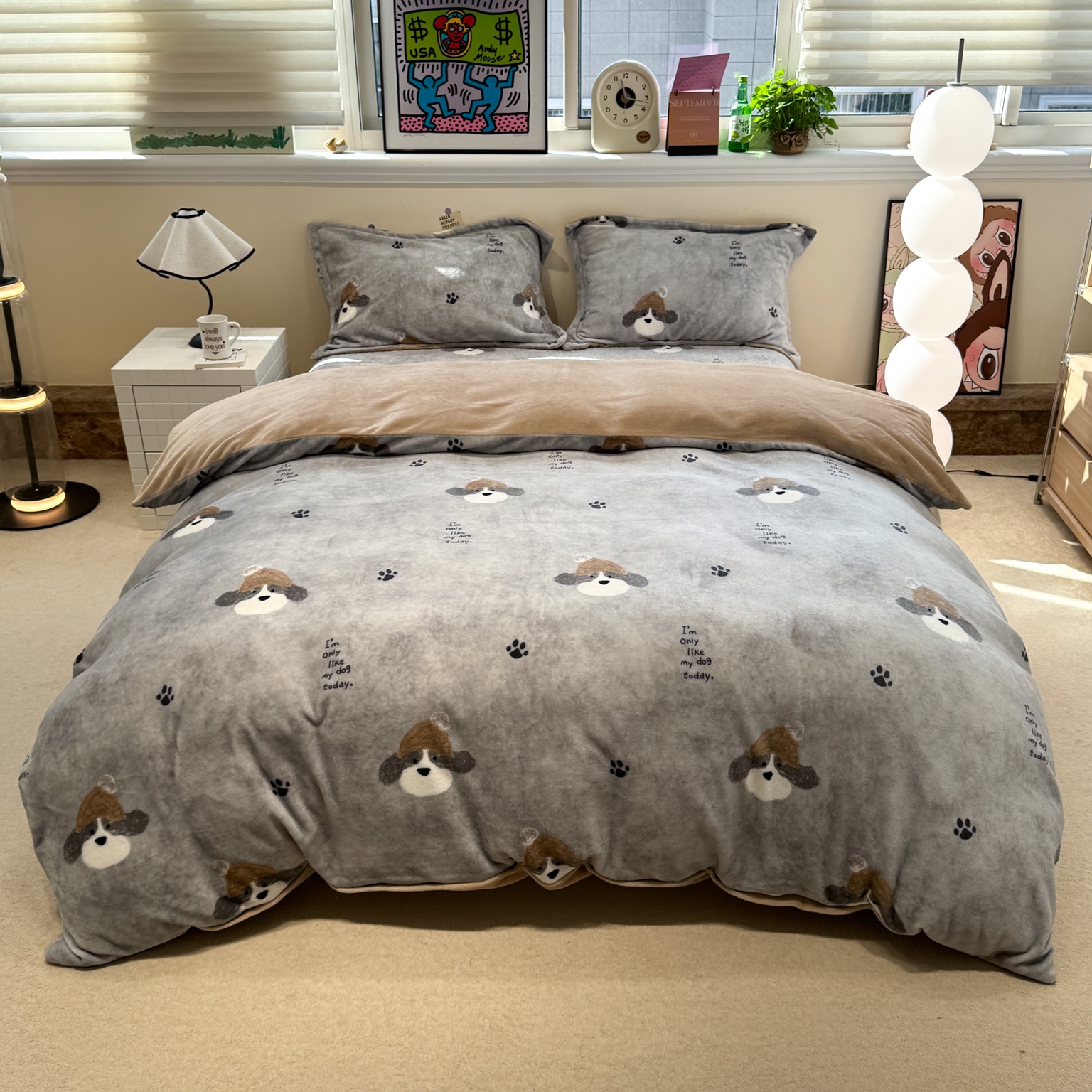潘朵拉 2025新款ins风牛奶绒床盖四件套 小狗杰西