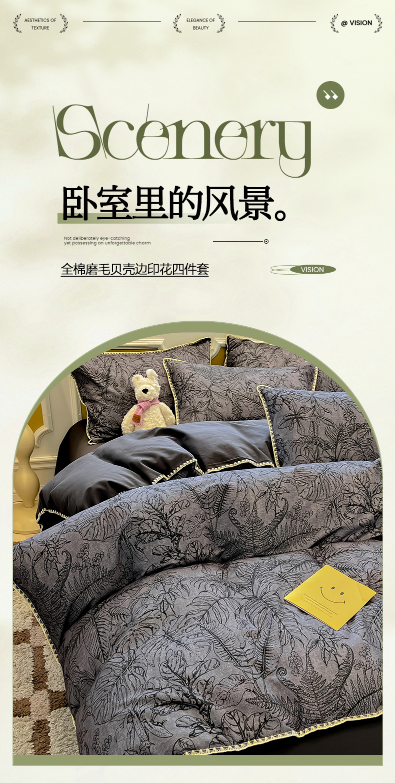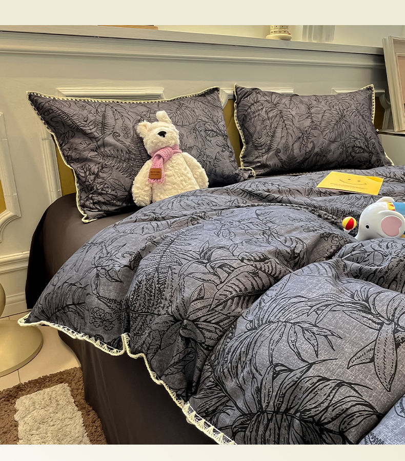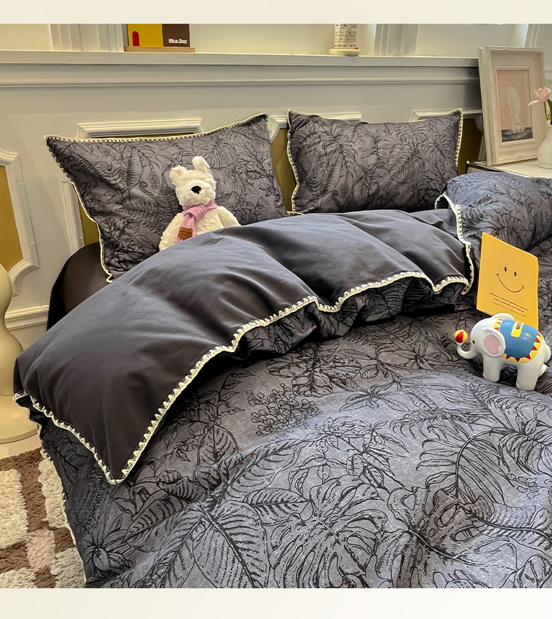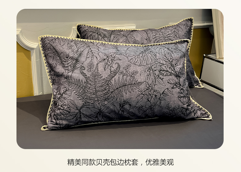 吉象家纺 2025新款全棉磨毛三角针贝壳边印花四件套 清浅