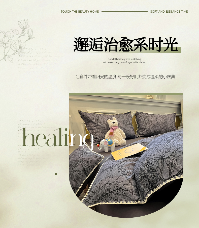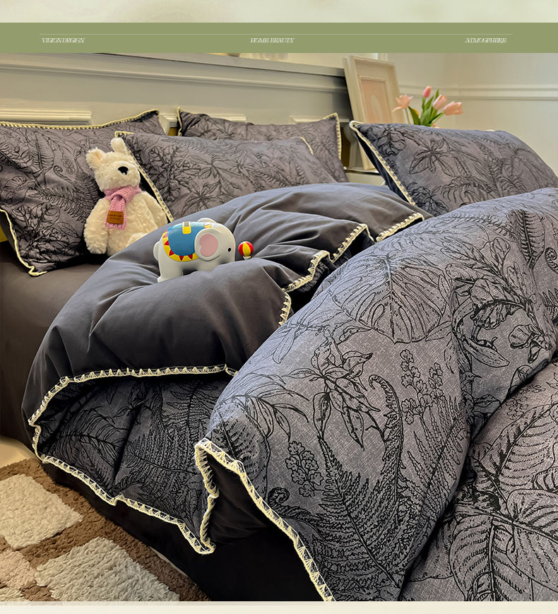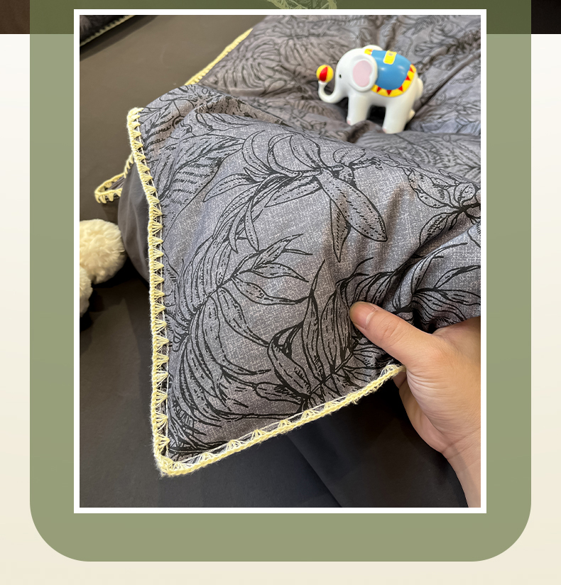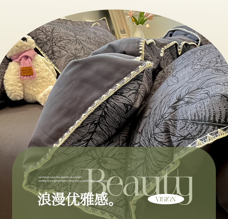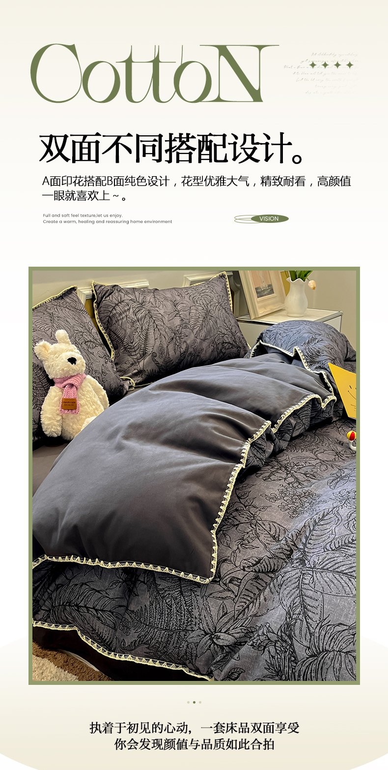 吉象家纺 2025新款全棉磨毛三角针贝壳边印花四件套 清浅