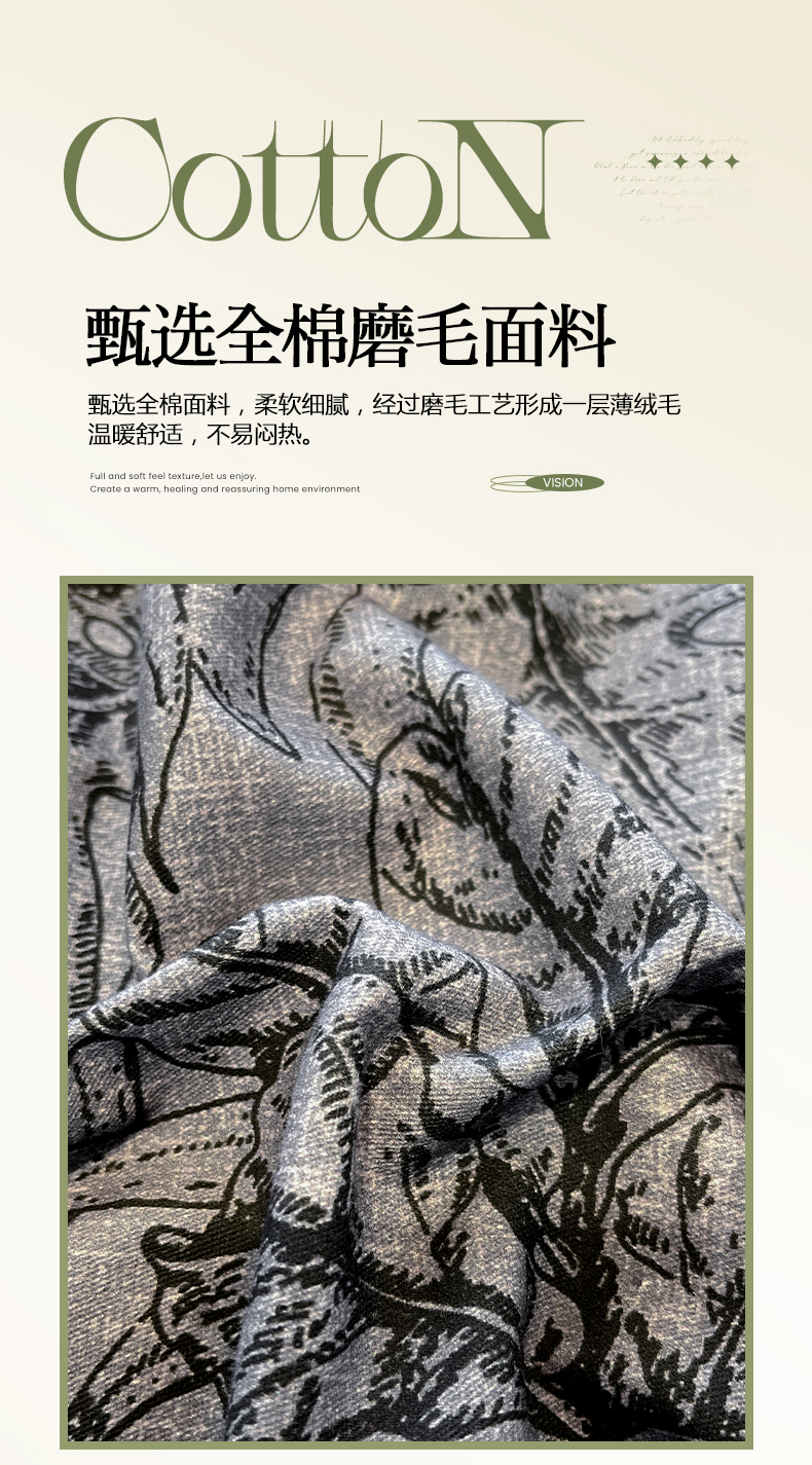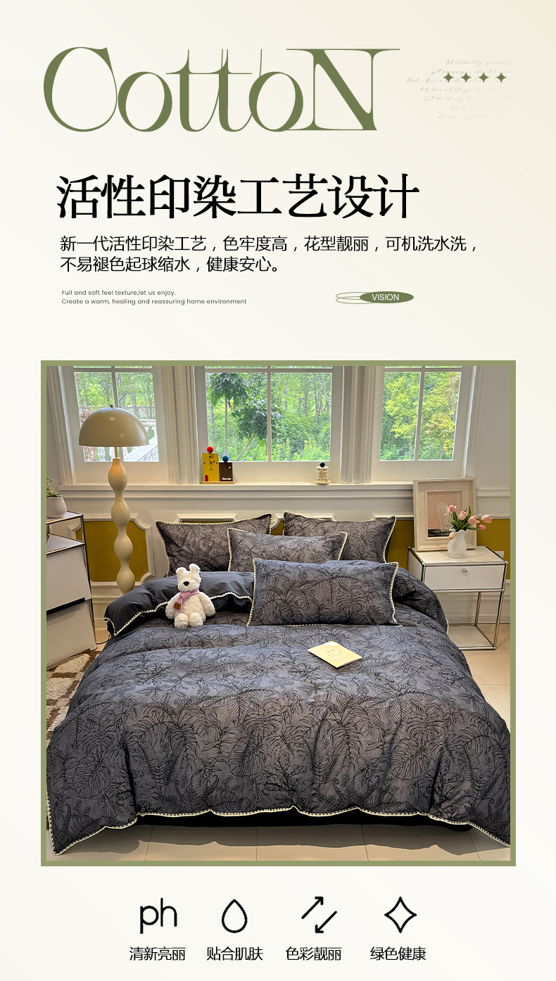 (总)吉象家纺 2025新款全棉磨毛三角针贝壳边印花四件套,枫叶,满园花开 -桔,墨染,浅夏 -绿,清浅,薰染 -红