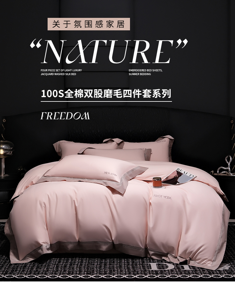 商品名称:OL家纺 2025新款100全棉双股磨毛四件套(控价1.5/1.8标准被套折券后368元!!!) 樱桃粉