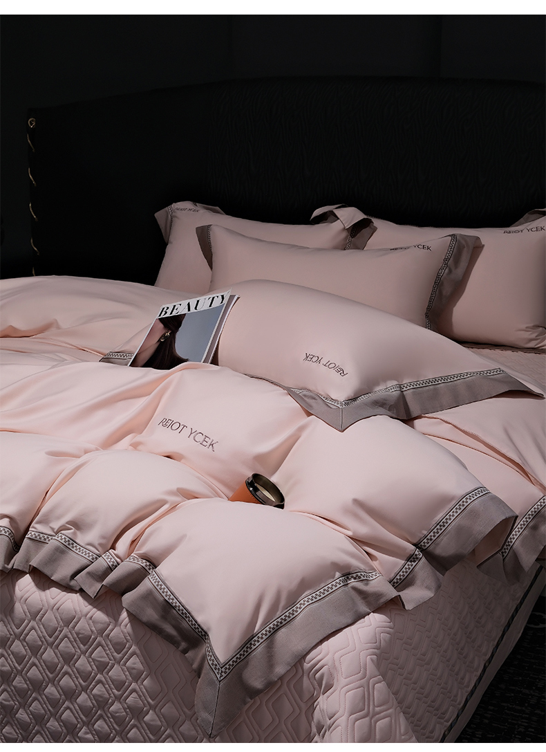 (总)ol 2022新款全棉纯色居家被套床盖枕套夹棉绗绣四件套,宾利蓝,高雅灰,海棠绿,梦幻紫,蜜糖桔,奶油黄,浅豆沙,浅米金,樱花粉