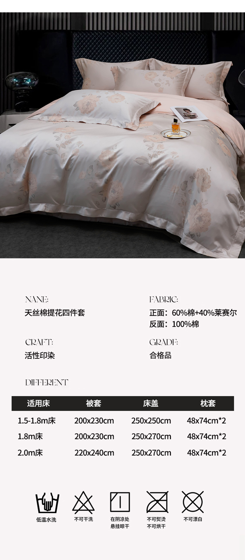商品名称:OL家纺 2025新款天丝棉色织大提花四件套(控价1.5/1.8标准被套折券后398元!!!) 雅姿-豆沙粉