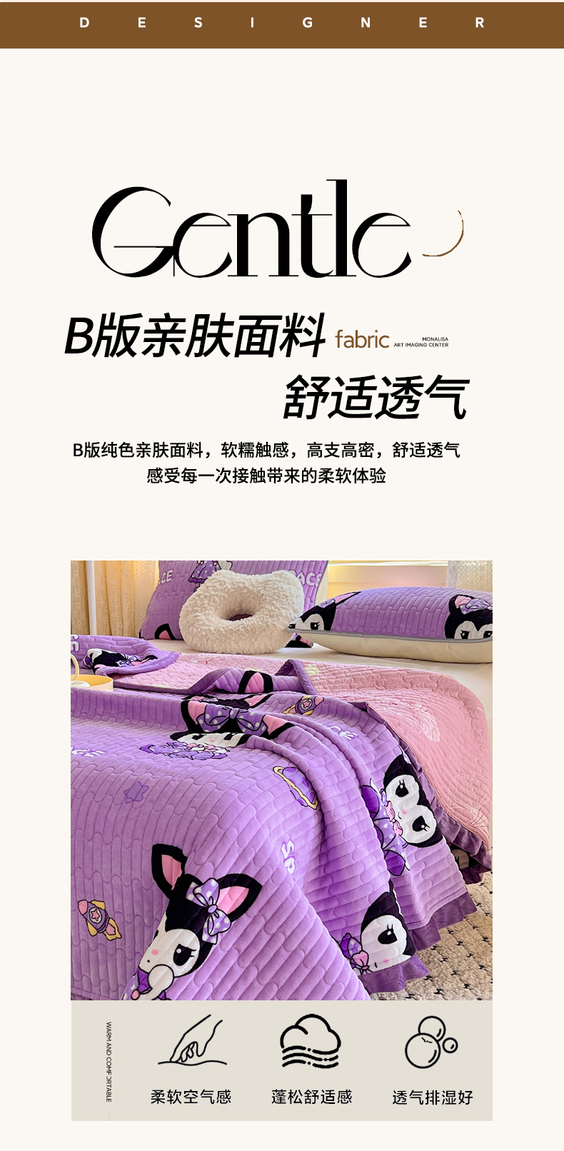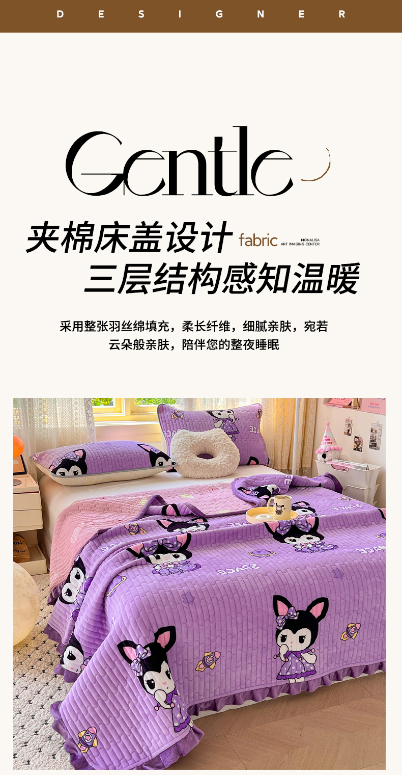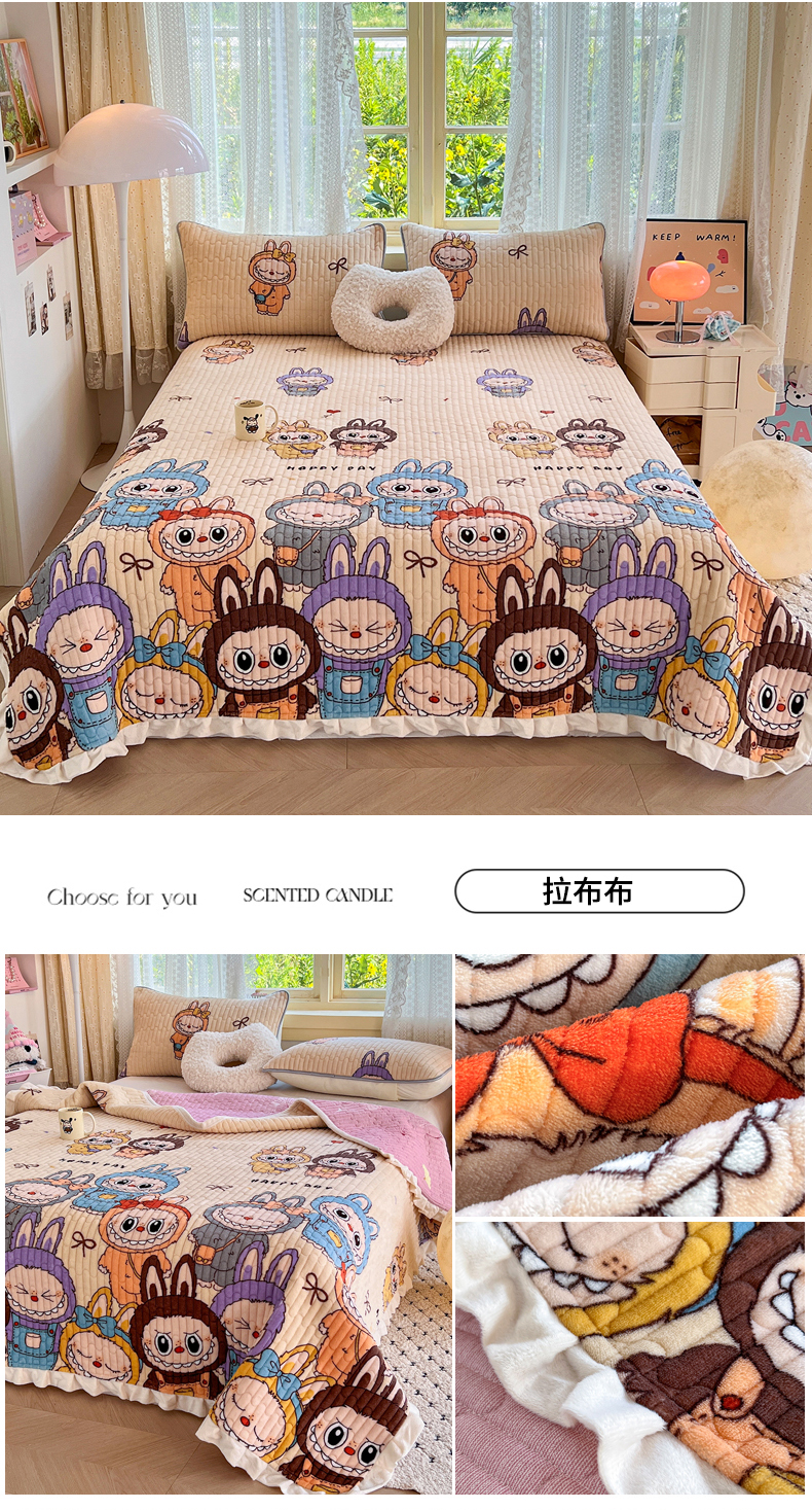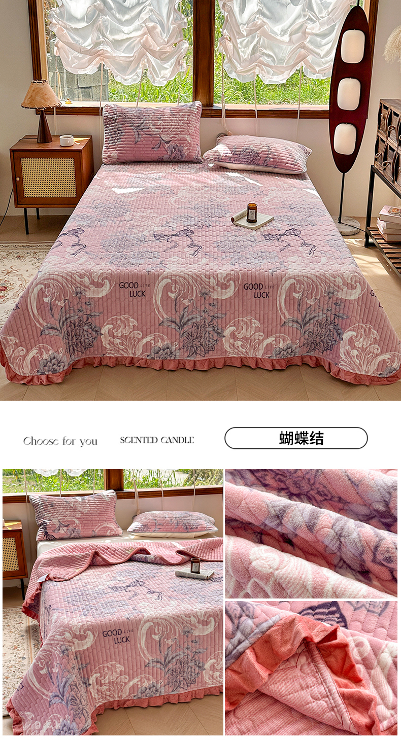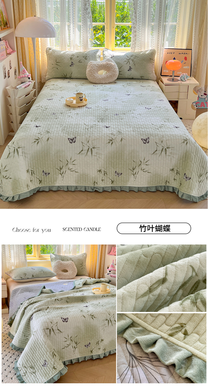 商品名称:梵克保罗 2025新款A类牛奶绒夹棉花边韩版印花床盖三件套加厚保暖多功能单床盖 一举夺葵