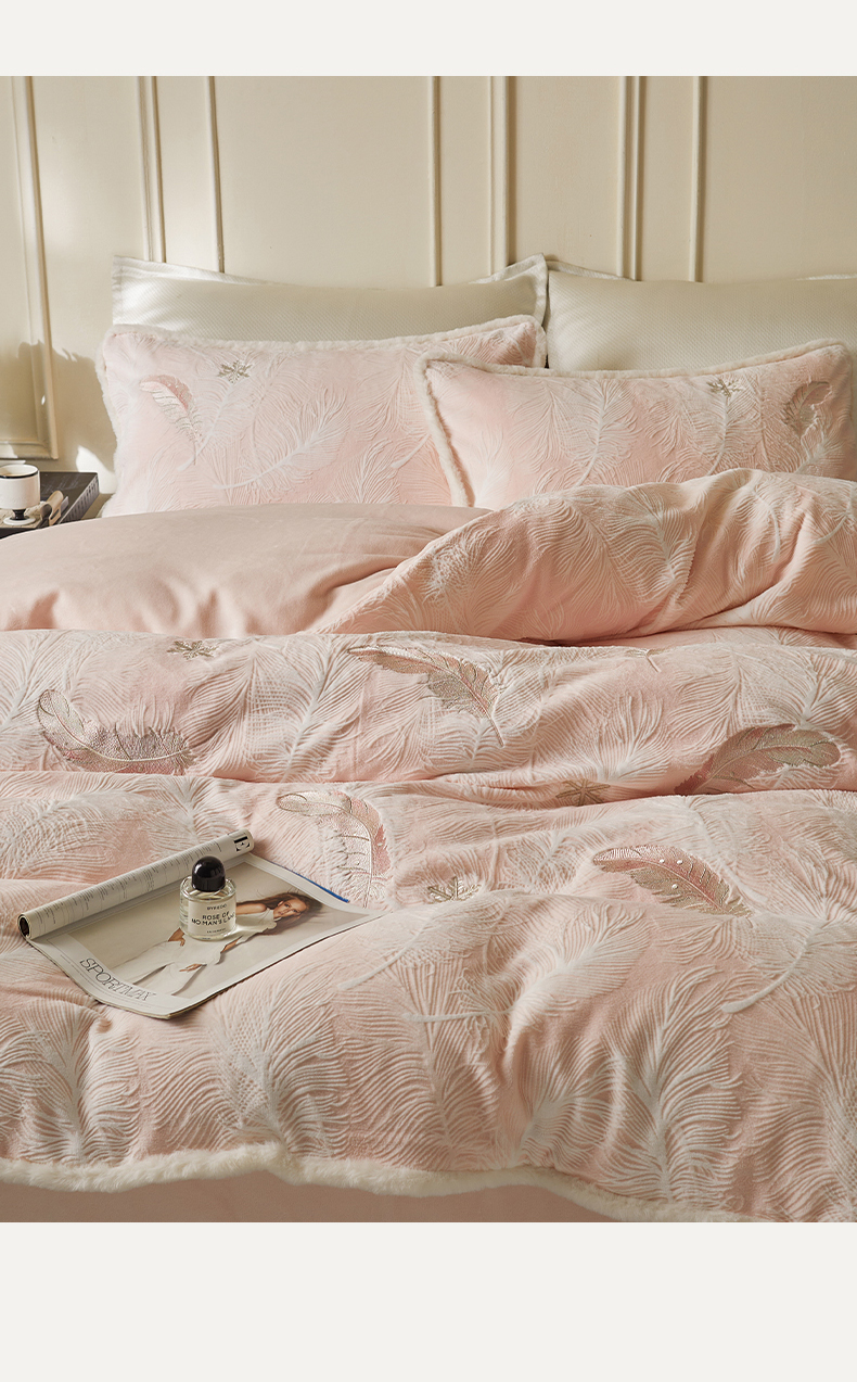 当前位置: 91家纺网 > 商品网购 > 床品套件 > 四件套 > 牛奶绒四件套 > (总)安莱生活 2025新款雕花绣花230克牛奶绒四件套(羽脉系列)-风格1
