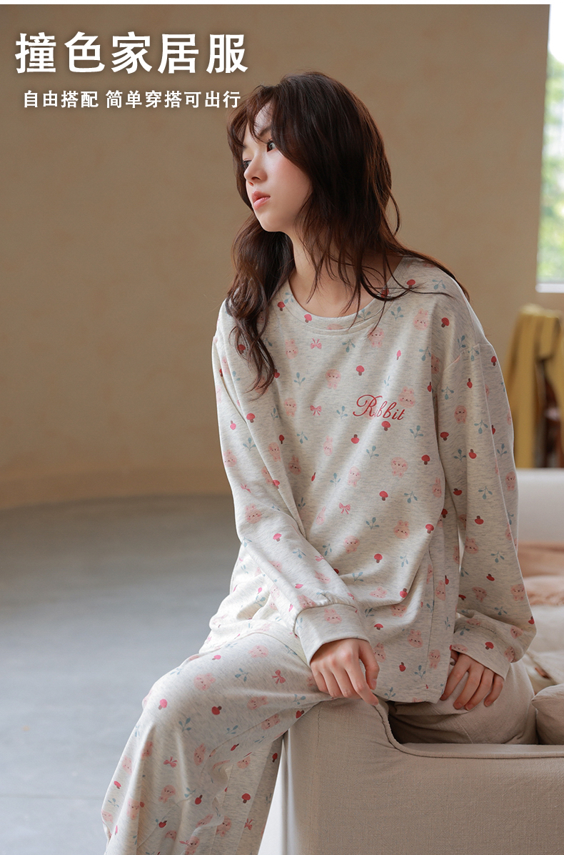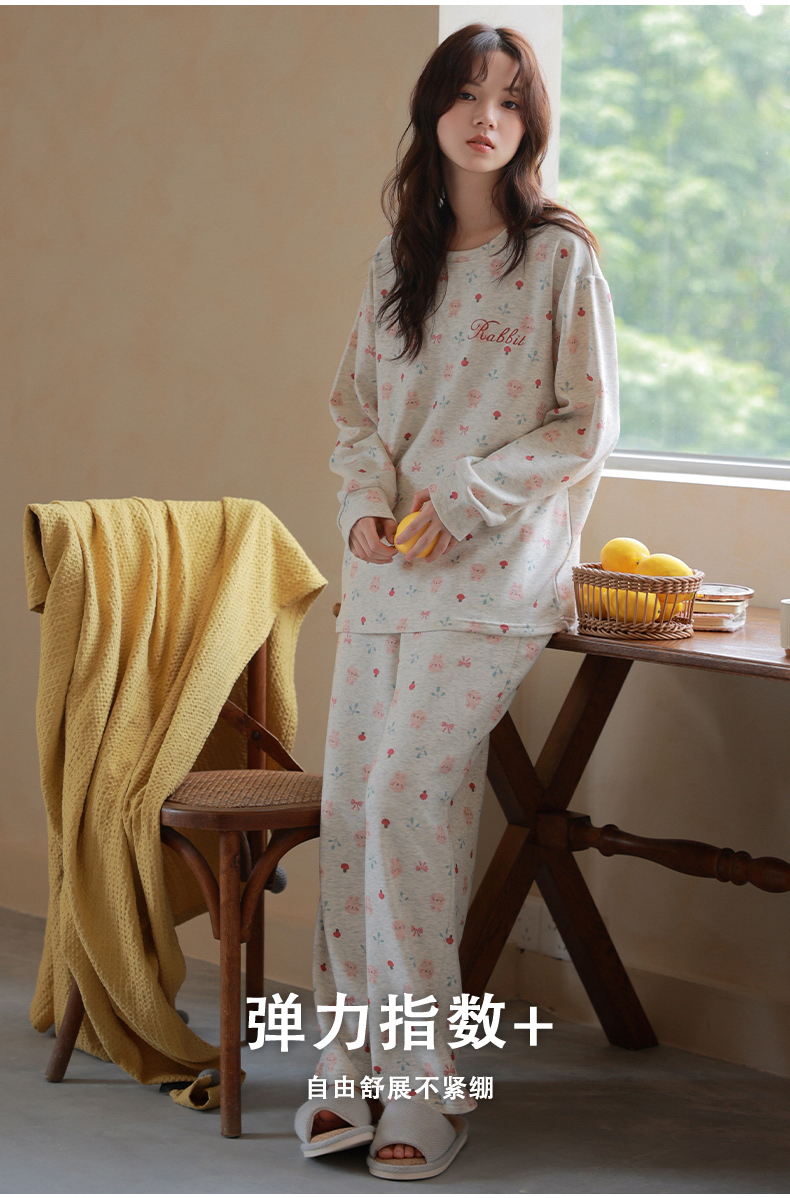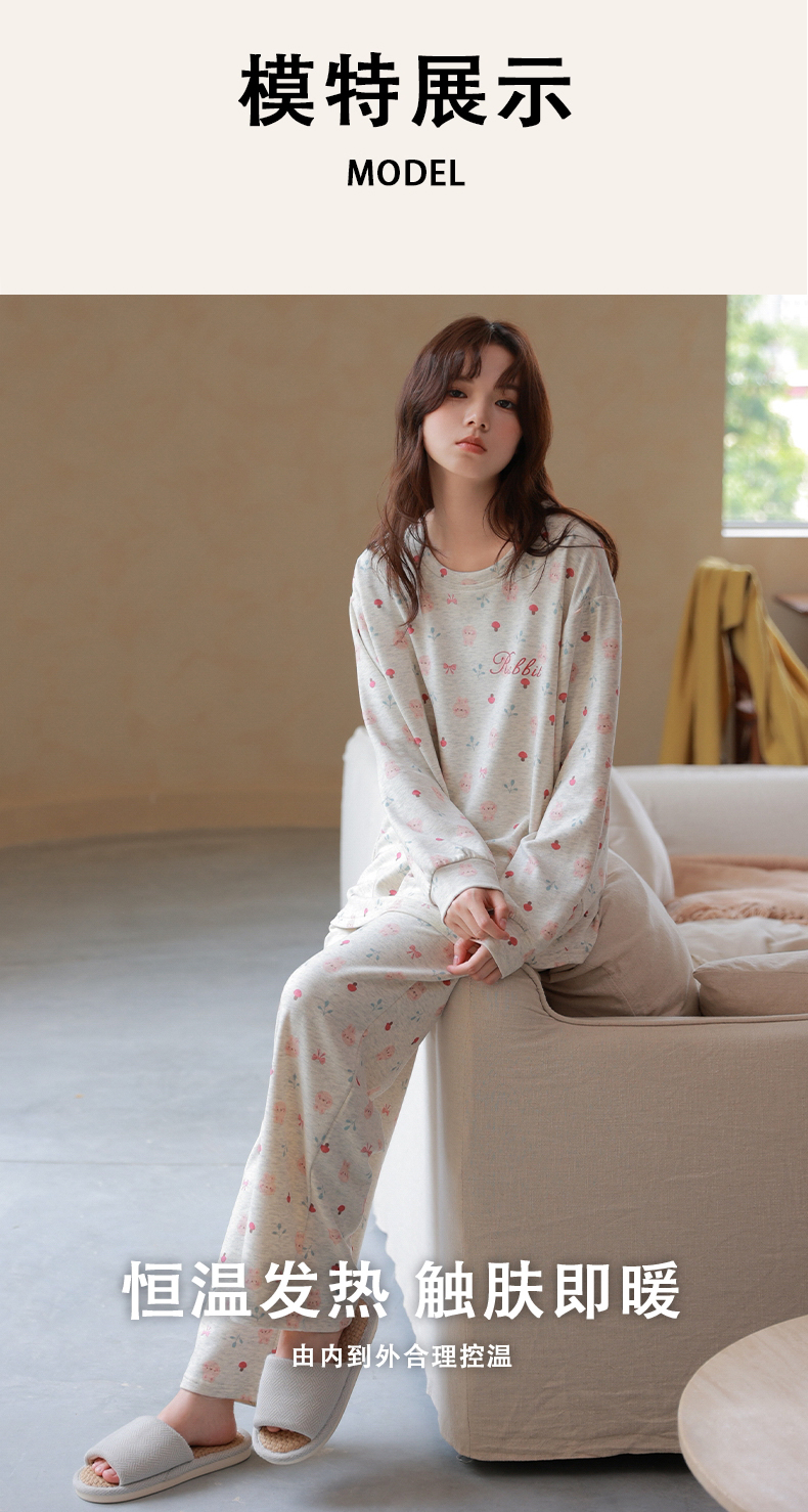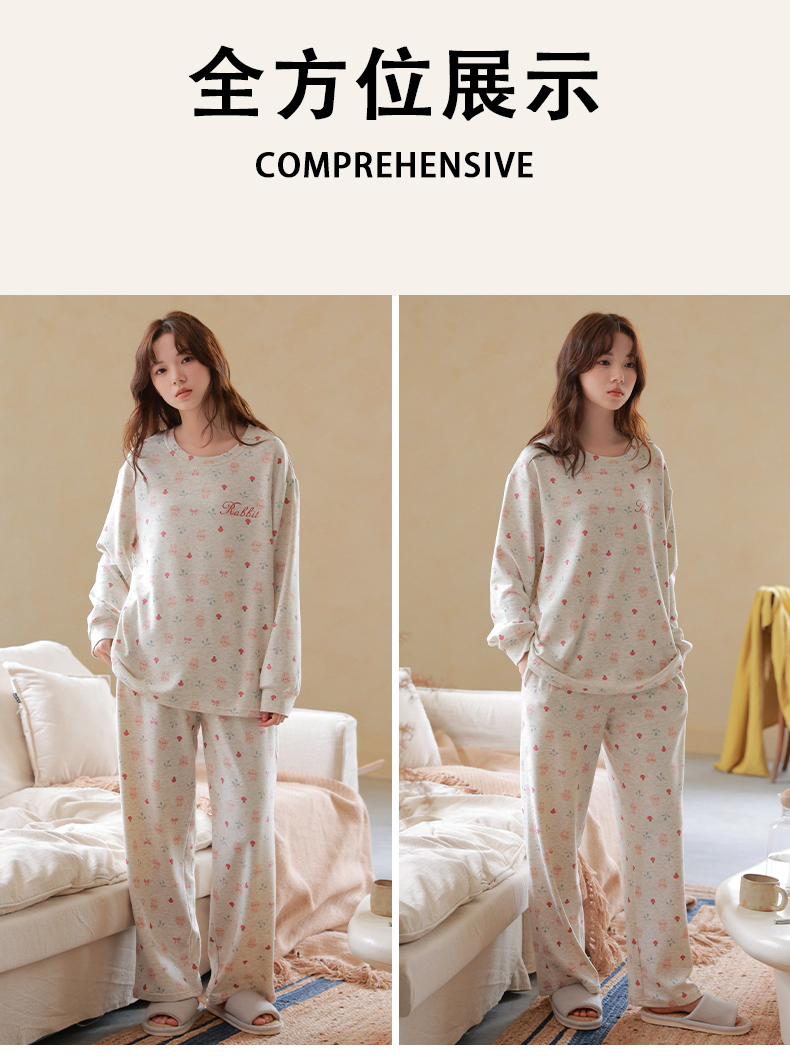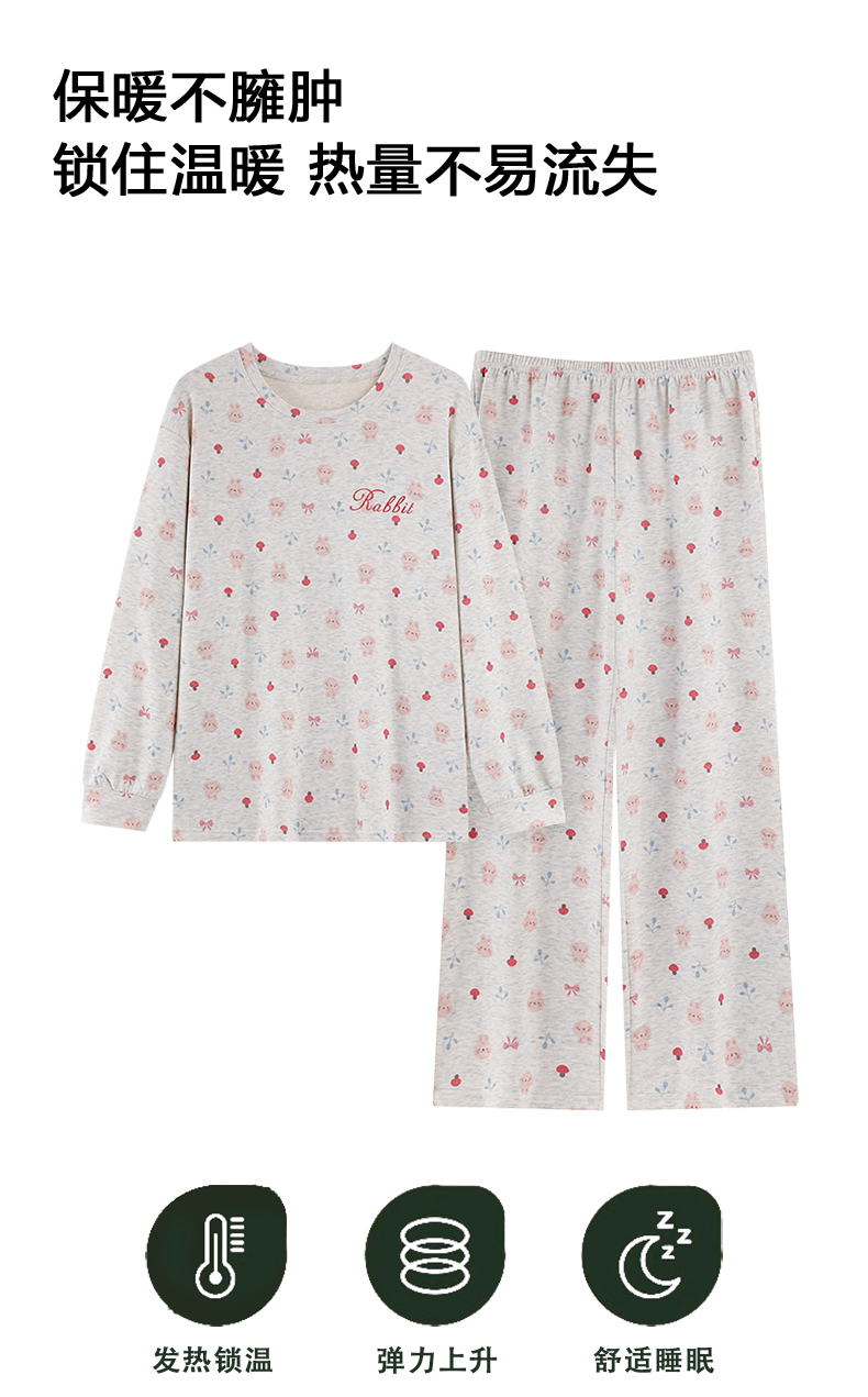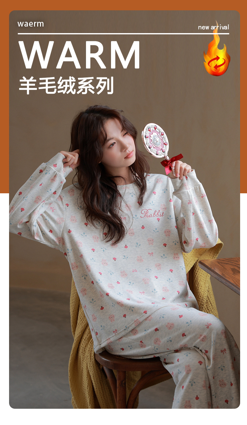 (总)洛兰沙家居馆 2024秋冬新款清新睡衣女三层夹棉玉兔绒加厚保暖两件套女士可外穿加绒家居服,粉色,黄色