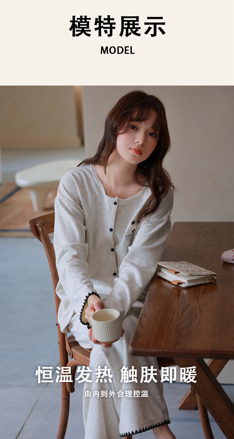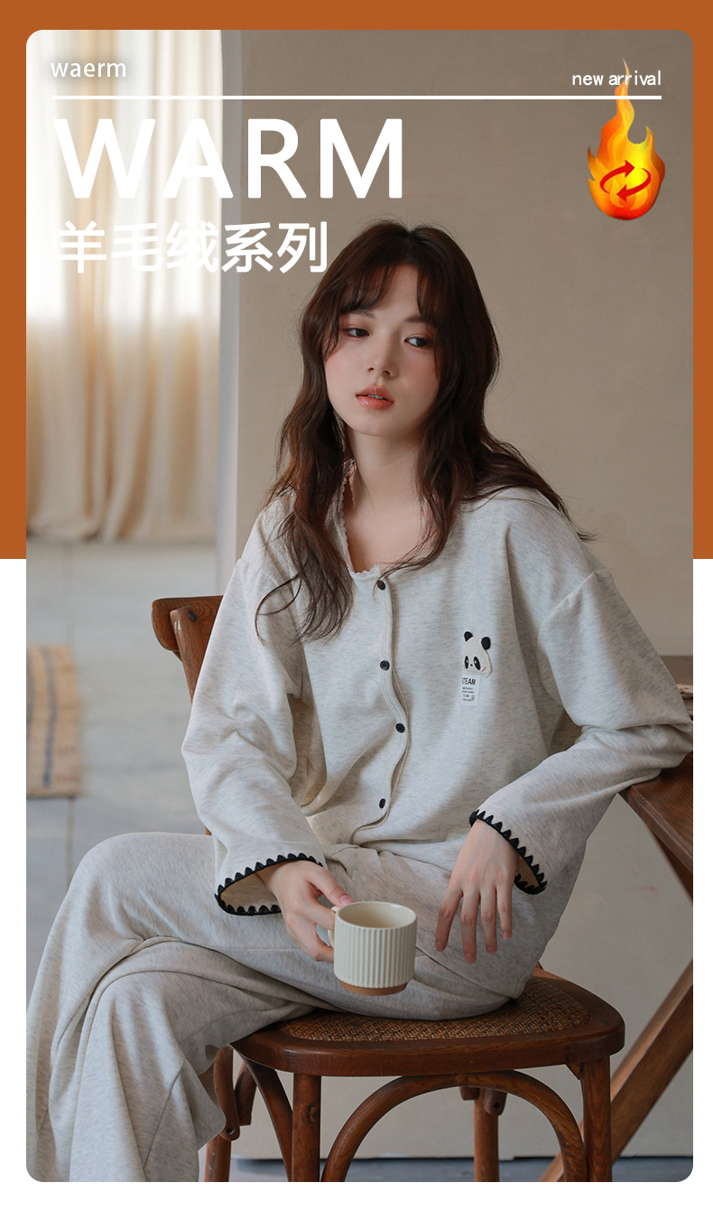商品名称:洛兰沙家居馆 2025新款睡衣女长袖新款春秋双层羊绒德绒可外穿卡通开衫家居服套装韩版秋冬 42316