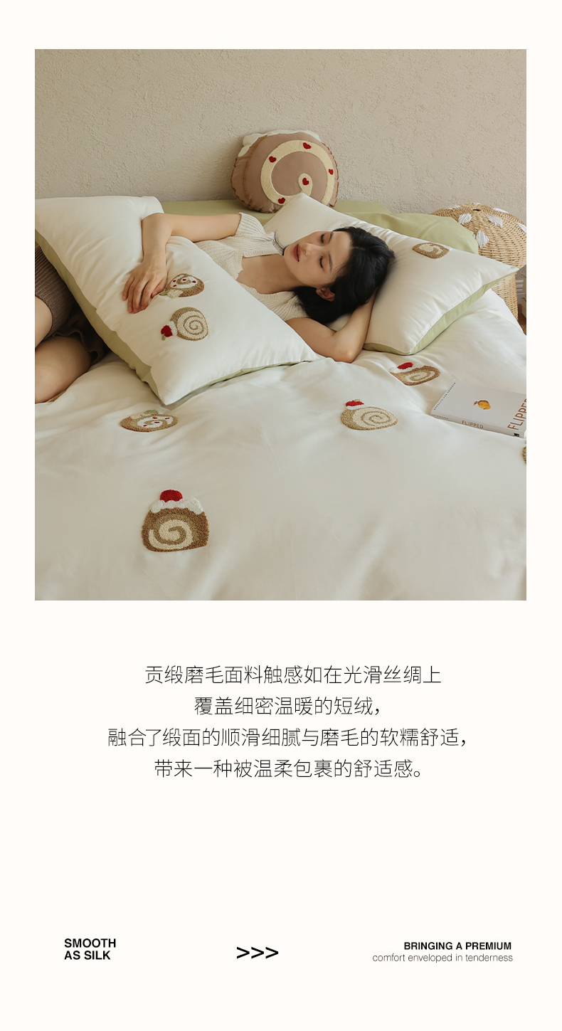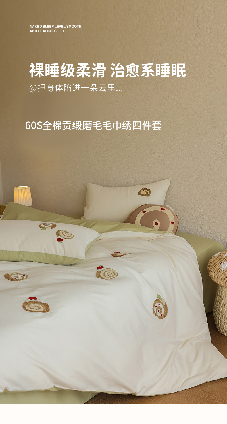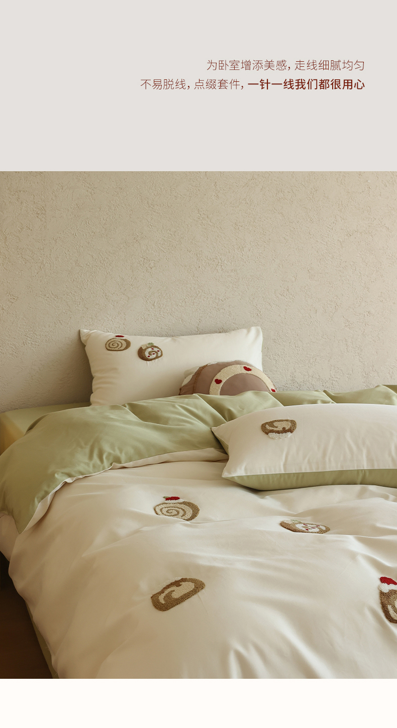 当前位置: 91家纺网 > 商品网购 > 床品套件 > 四件套 > 普通磨毛四件套 > 安莱生活 2025新款贡缎磨毛60s绣花四件套-风格二 抹茶瑞士卷