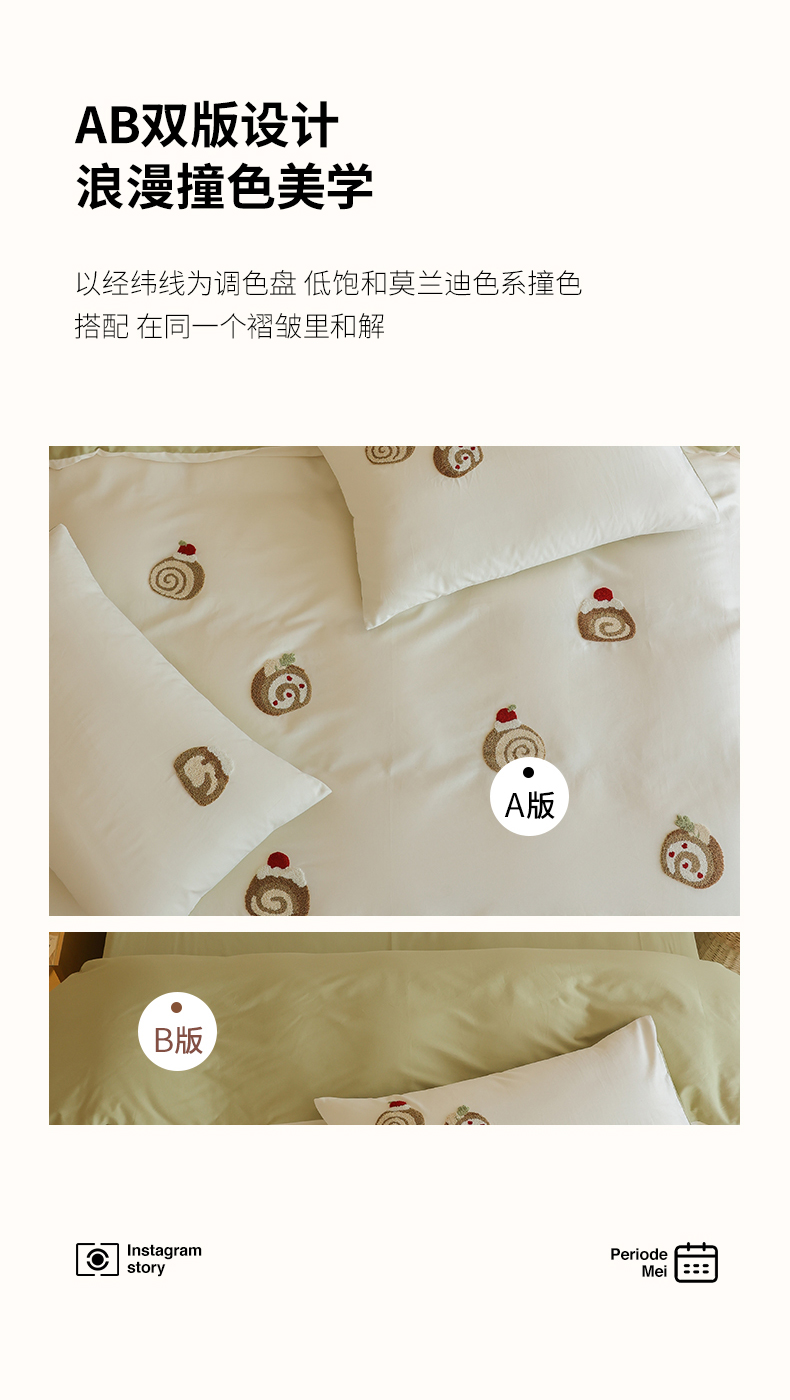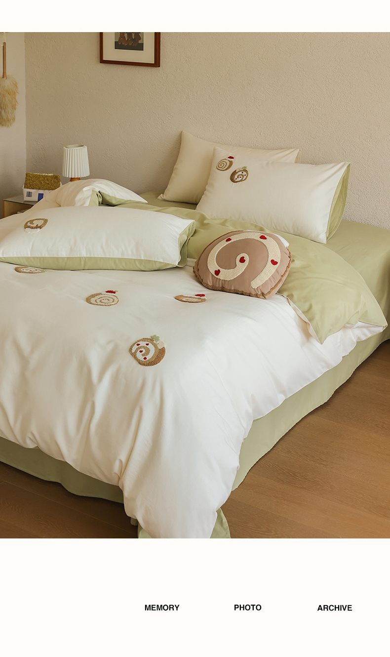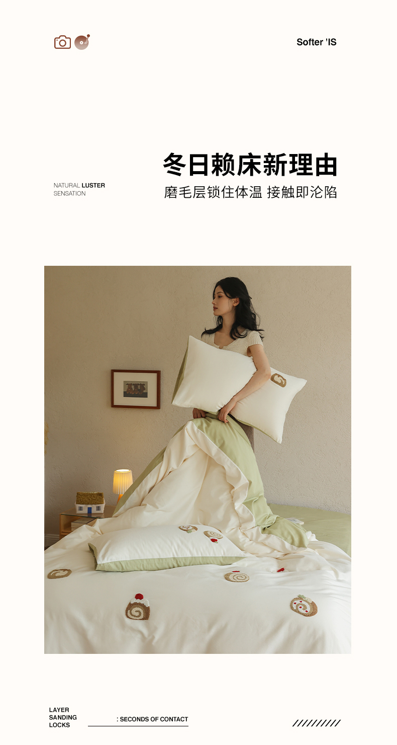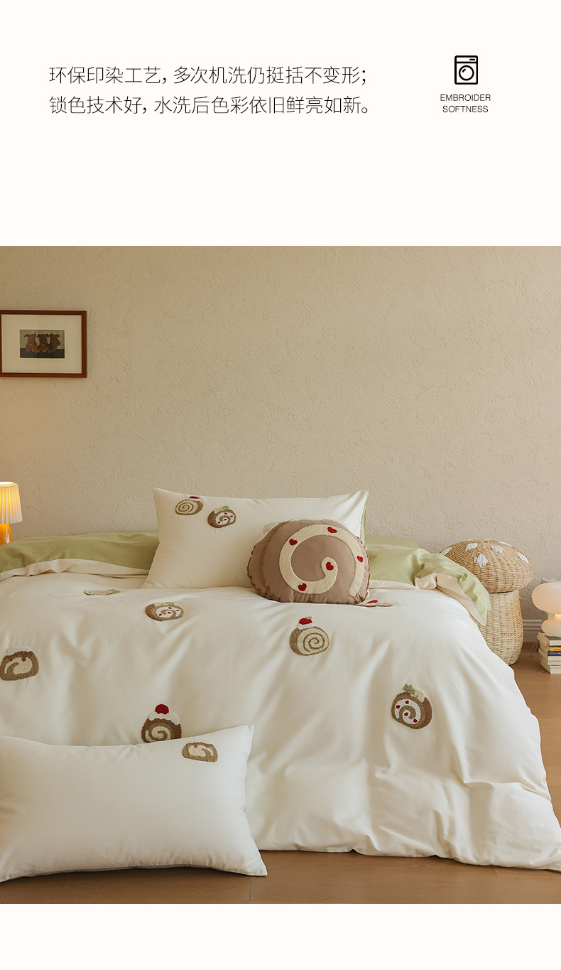 当前位置: 91家纺网 > 商品网购 > 床品套件 > 四件套 > 普通磨毛四件套 > 安莱生活 2025新款贡缎磨毛60s绣花四件套-风格二 抹茶瑞士卷