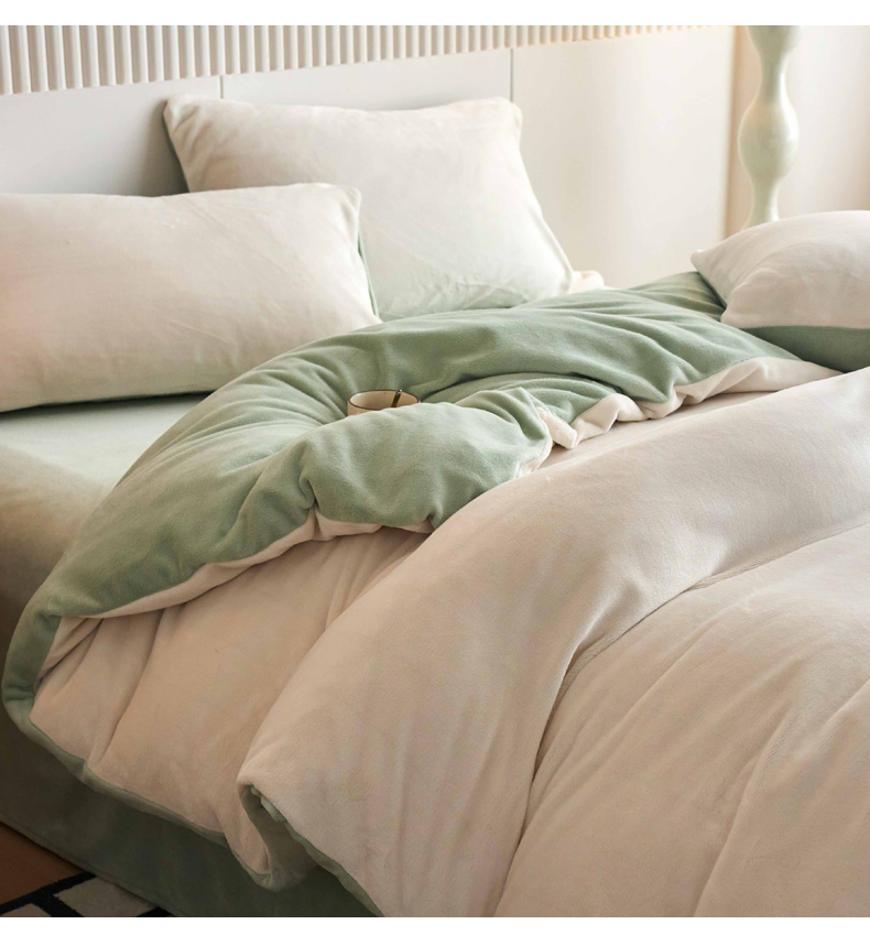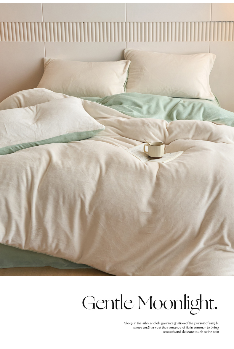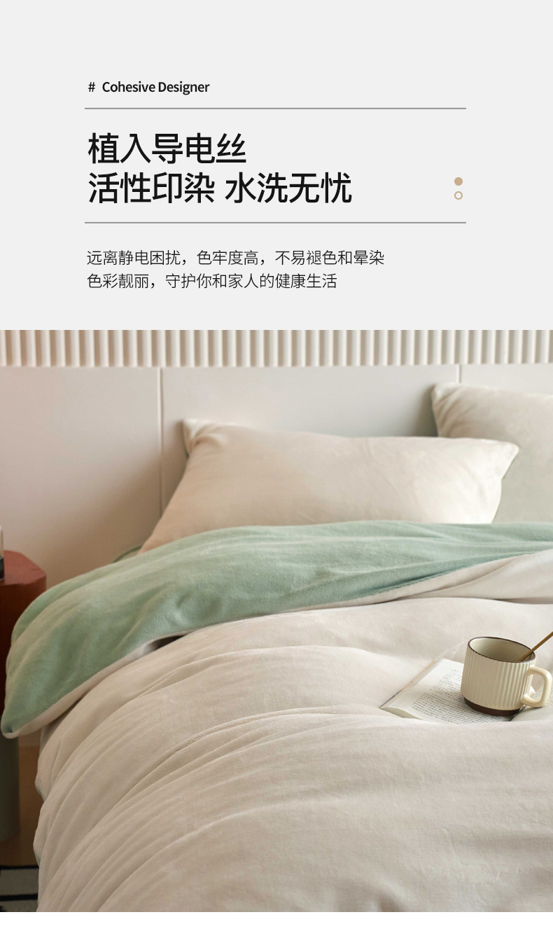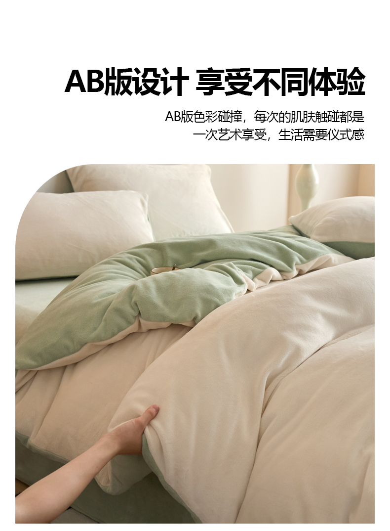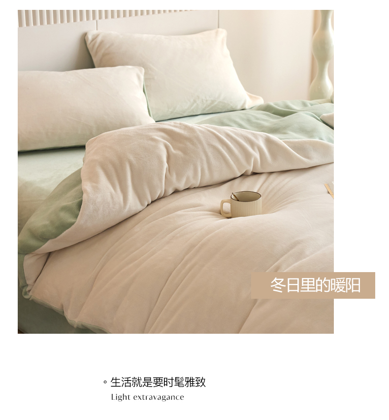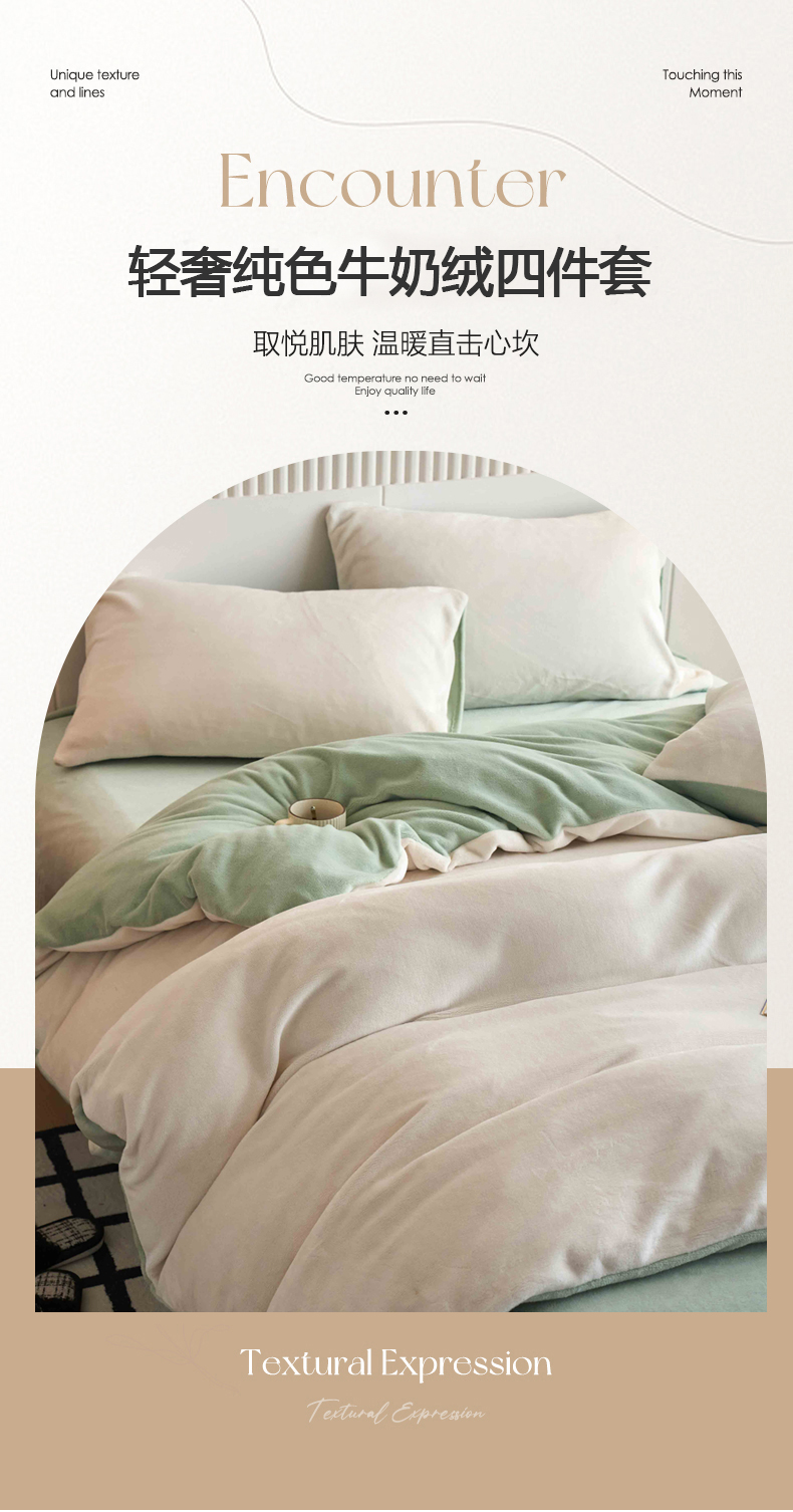 当前位置: 91家纺网 > 商品网购 > 床品套件 > 四件套 > 牛奶绒四件套 > 乐居家纺 2025新款200克重纯色单面绒牛奶绒四件套 奶昔白+淡彩绿