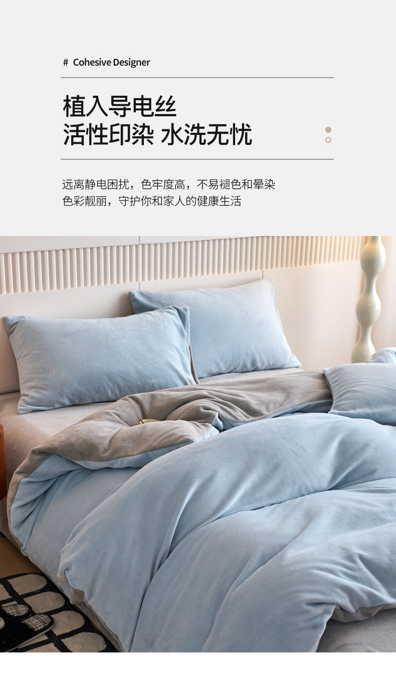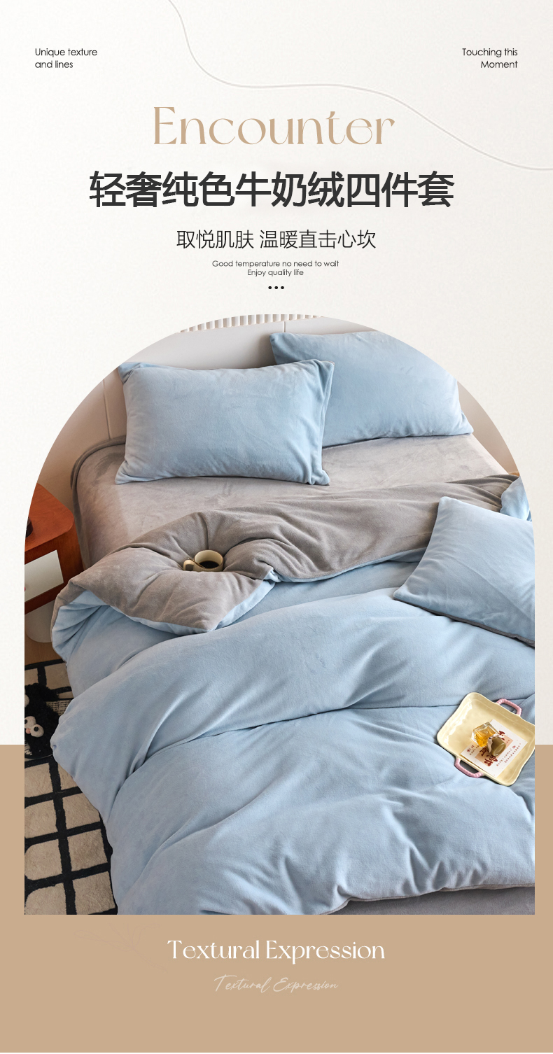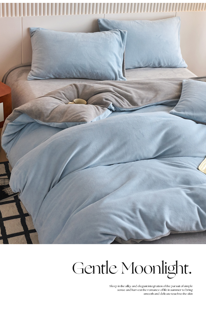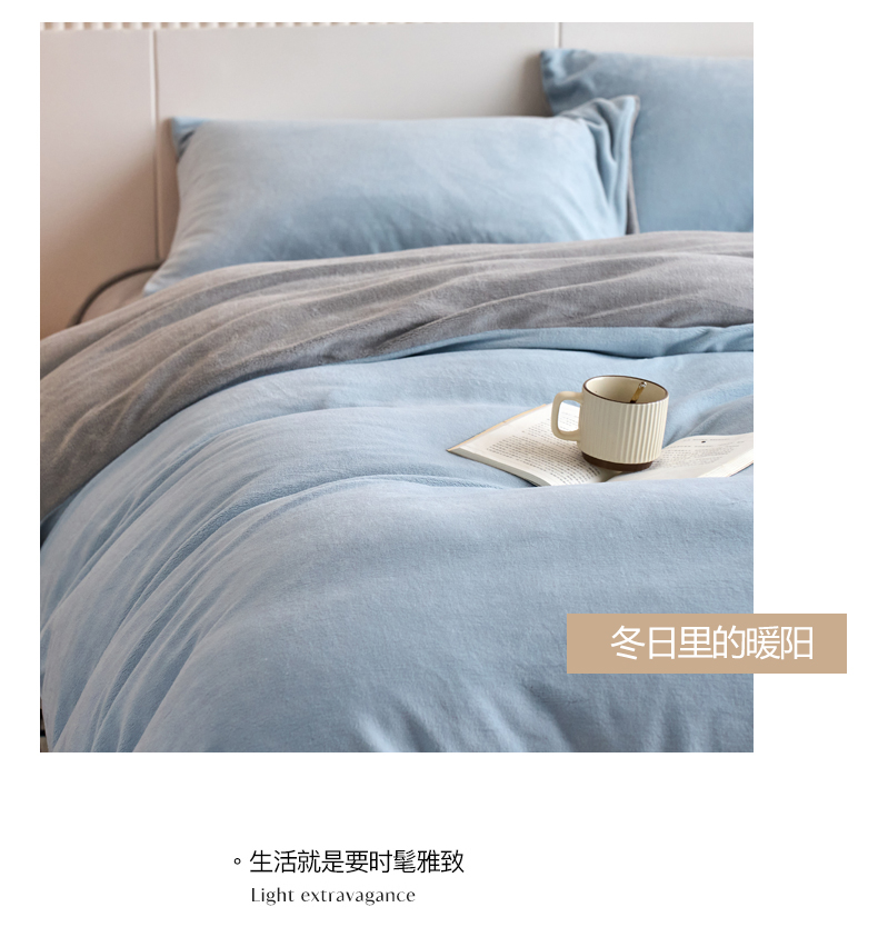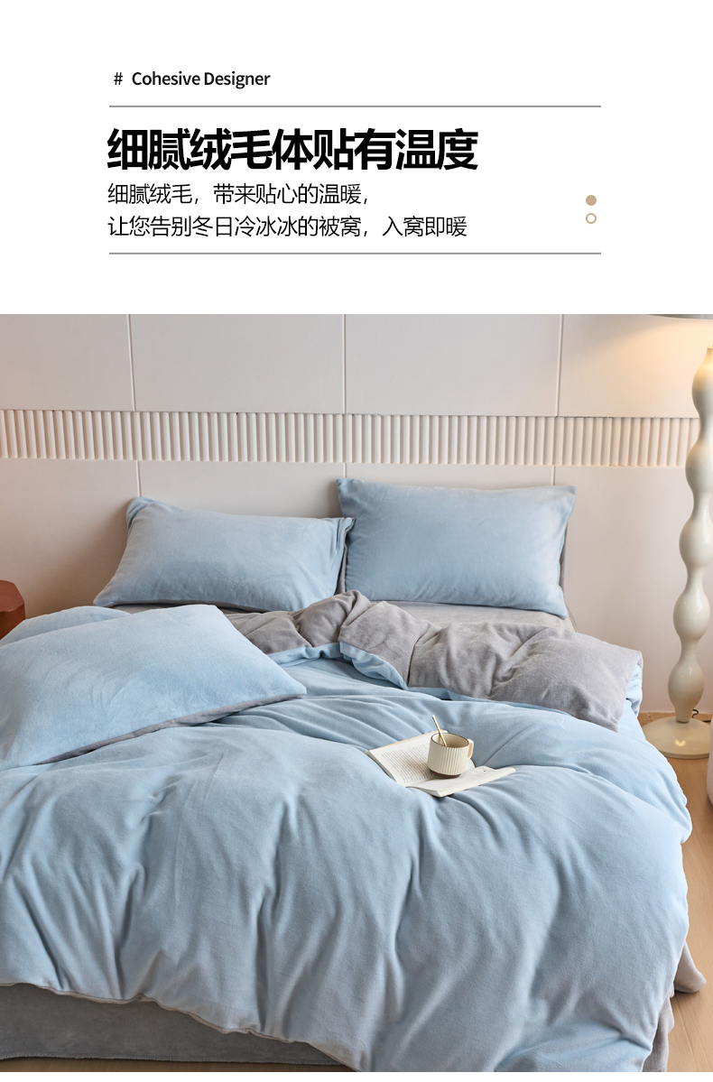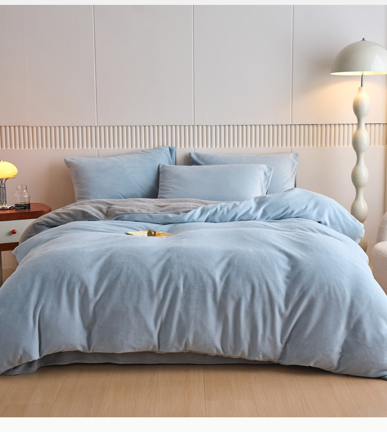 当前位置: 91家纺网 > 商品网购 > 床品套件 > 四件套 > 牛奶绒四件套 > 乐居家纺 2025新款200克重纯色单面绒牛奶绒四件套 天空蓝+绅士灰
