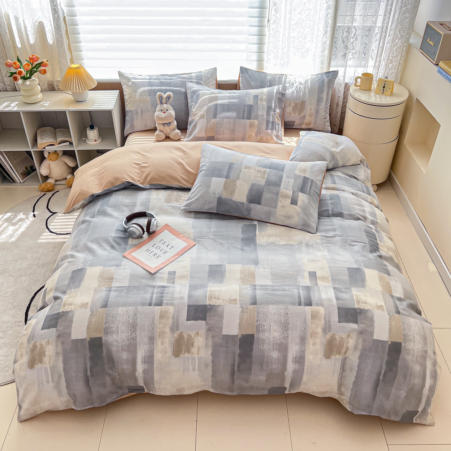 (总)红馆 13070全棉印花系列四件套-易安阁实拍风格,爱巢,草莓酱,春天里,多彩三角,格调,花曳,简爱,卷卷熊,空间,快乐宝贝,梦田,七夕,少女心,绅士,西雅图,小鲸鱼,星座