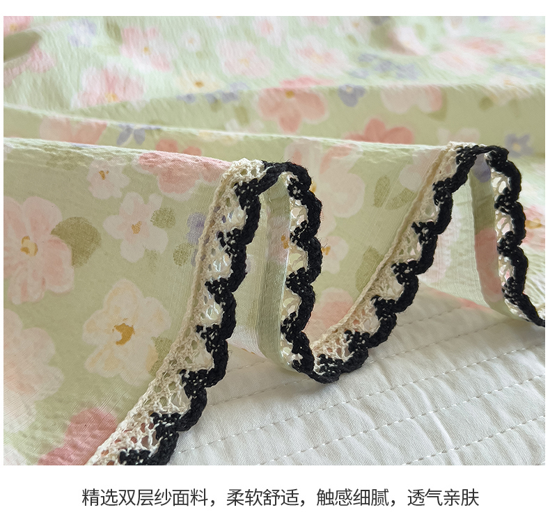 当前位置: 91家纺网 > 商品网购 > 床上用品 > 床单 > 三盛源 2025新款韩版碎花皱皱双层纱镂空花边水洗棉单床单床单单件 莱茵-绿