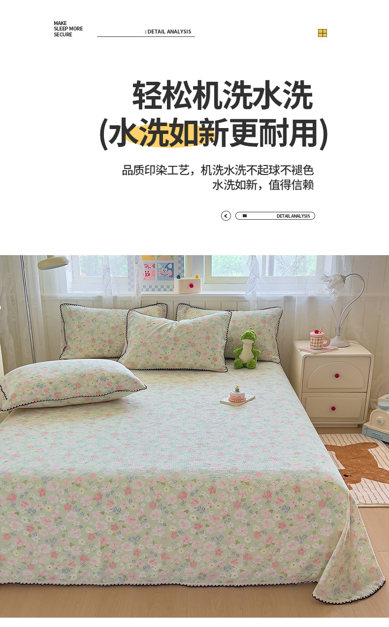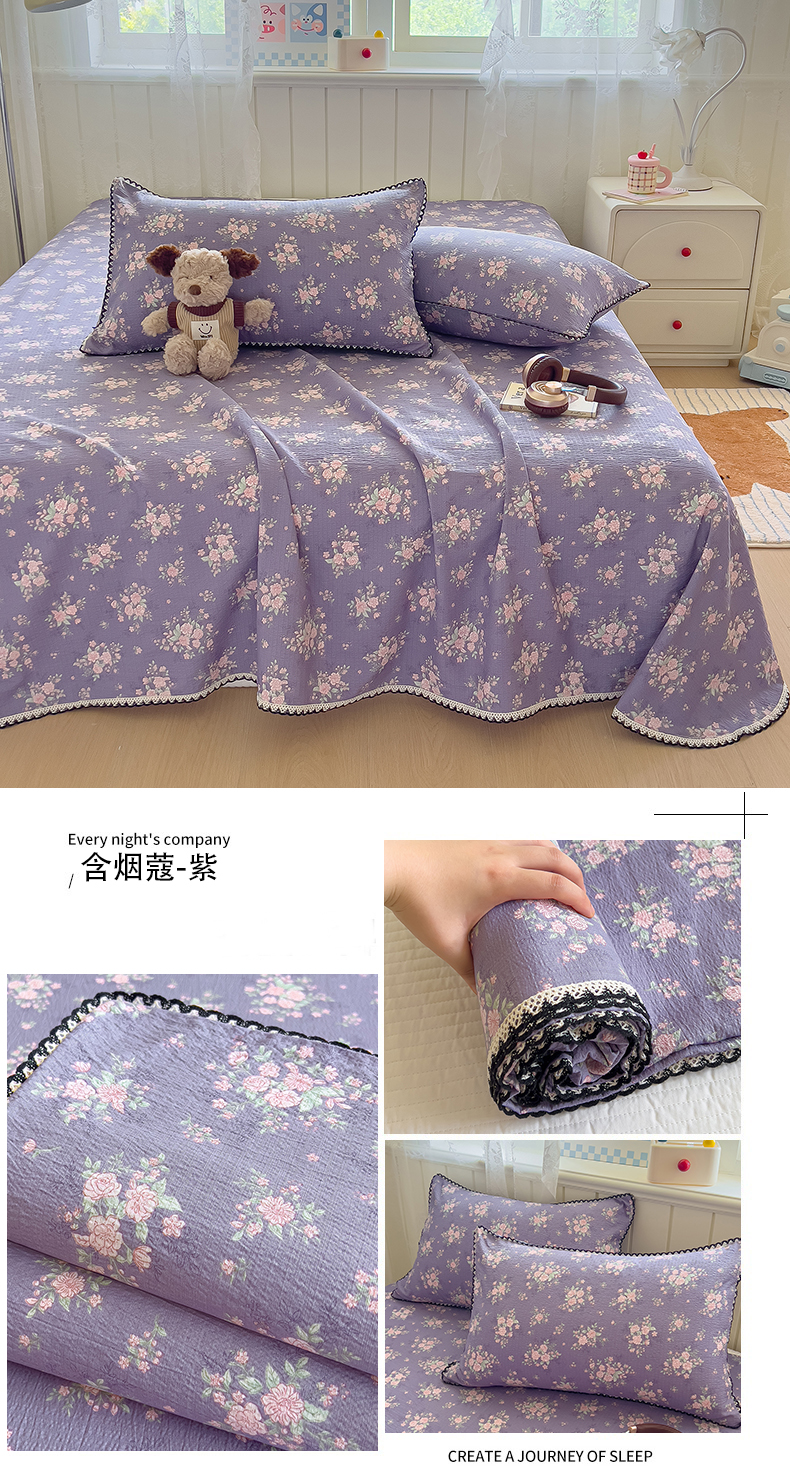 (总)三盛源 2025新款韩版碎花皱皱双层纱镂空花边水洗棉单床单床单单件,波点兔-蓝,狗狗乐园,含烟蔻-紫,莱茵-绿,梦境,奶油芝士,桃之妖妖,樱桃波波